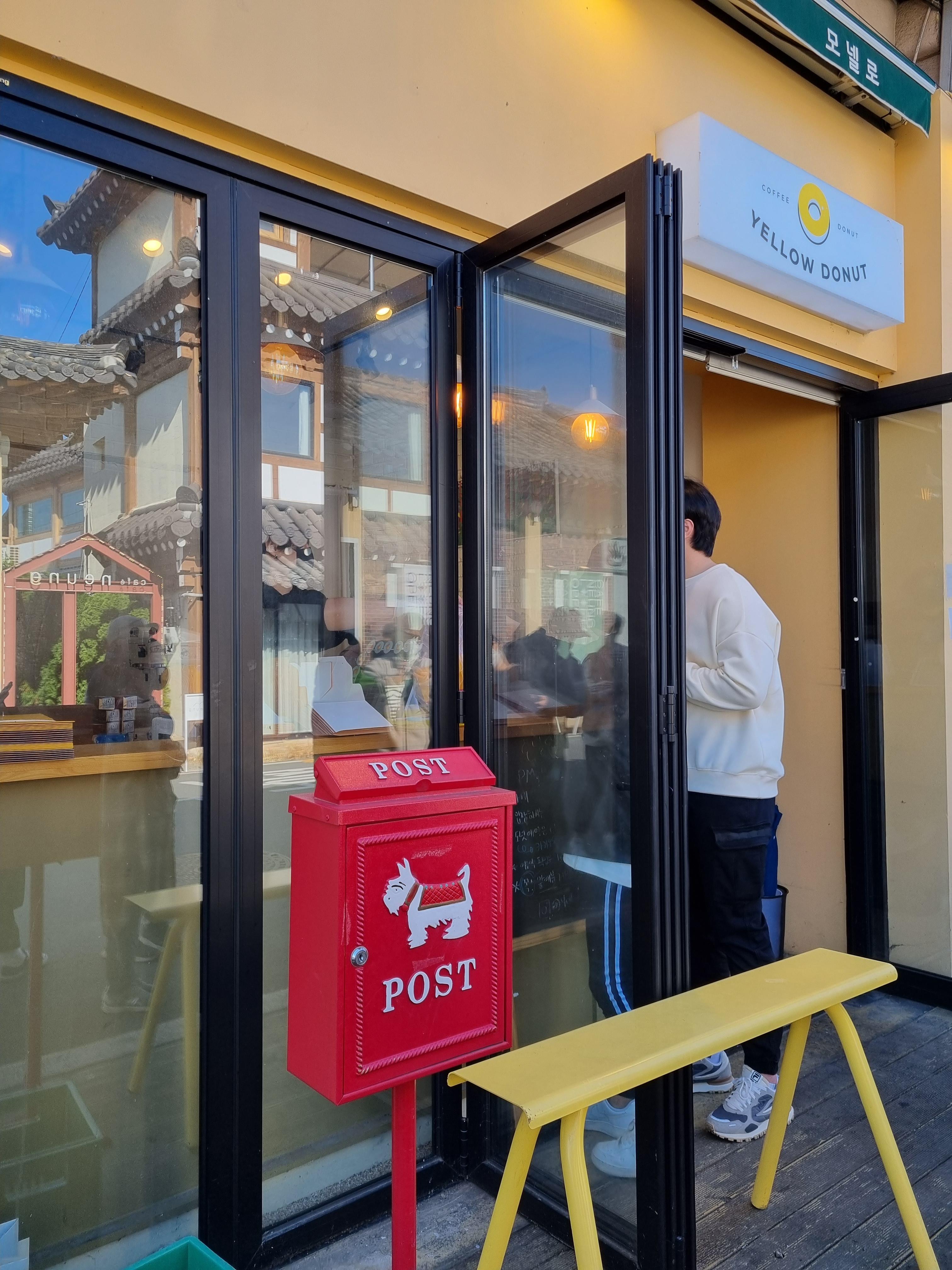 오늘 11시20분에 황리단길서 점심 약속이 있었어요ㅎ 황리단길 점심약속은 무조건 이른시간에 가야해요 ㅎ 맛있는 비빔밥을먹고 딱 나오니..시간이 11시 57분ㅋㅋ 가자~~ 옐로우도넛으로...12시 오픈이니 가볍게 사겠지하구요.
