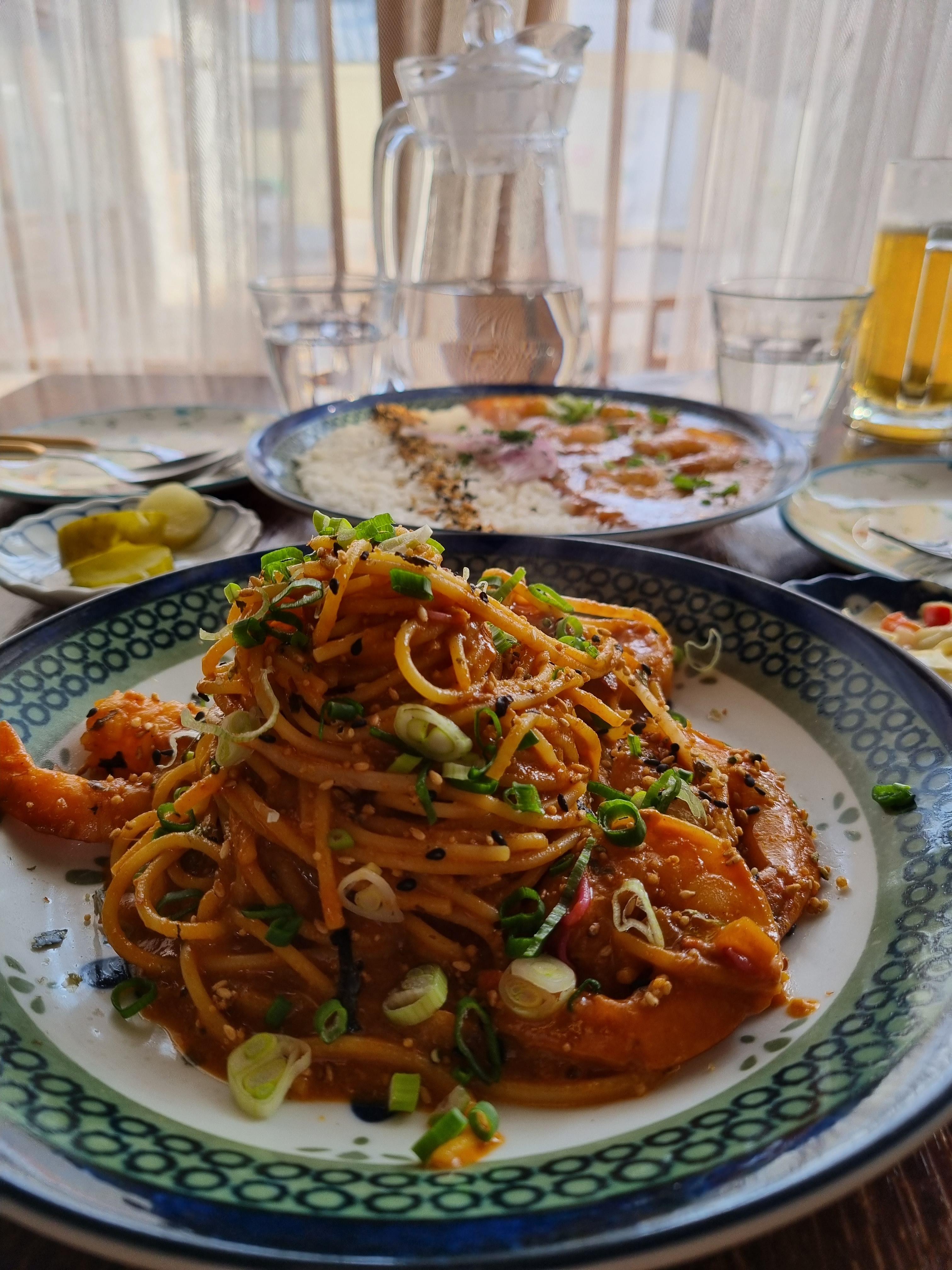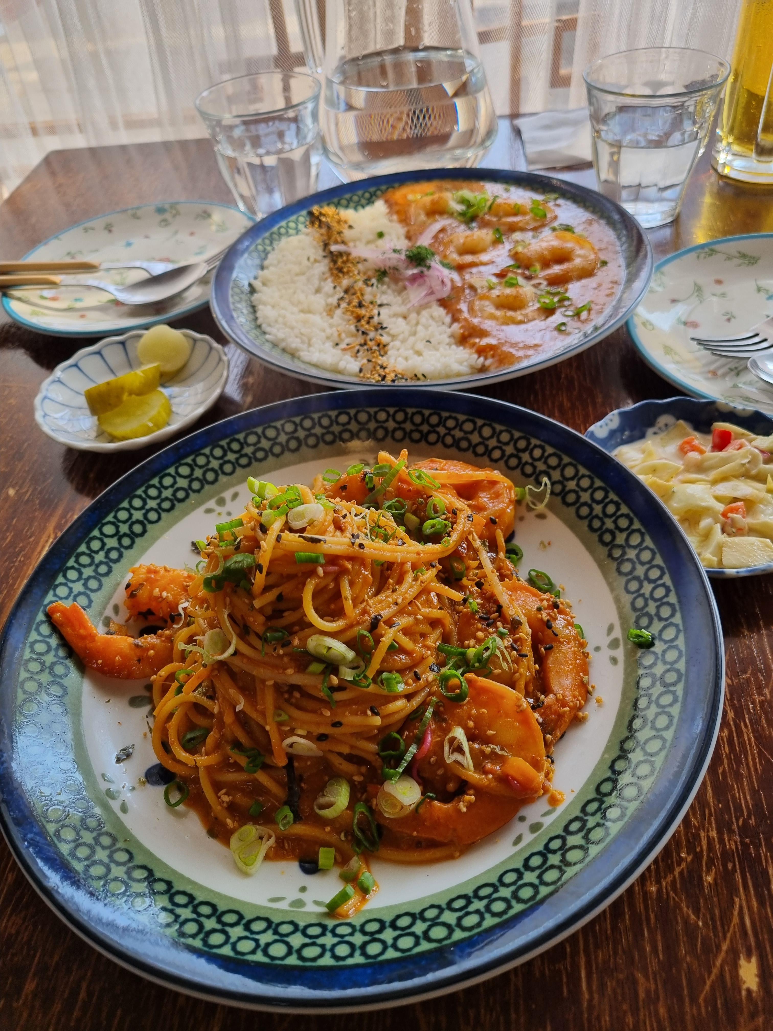 시즈닝파스타ㅡ 미고랭을 재해석한 시즈닝의 시그니처메뉴예요. 미고랭을 안 먹어봤지만 매콤하고 너무 맛깔스러운 맛이에요~ 새우도 큼지막하고 먹을수록, 더 맛있는 파스타.