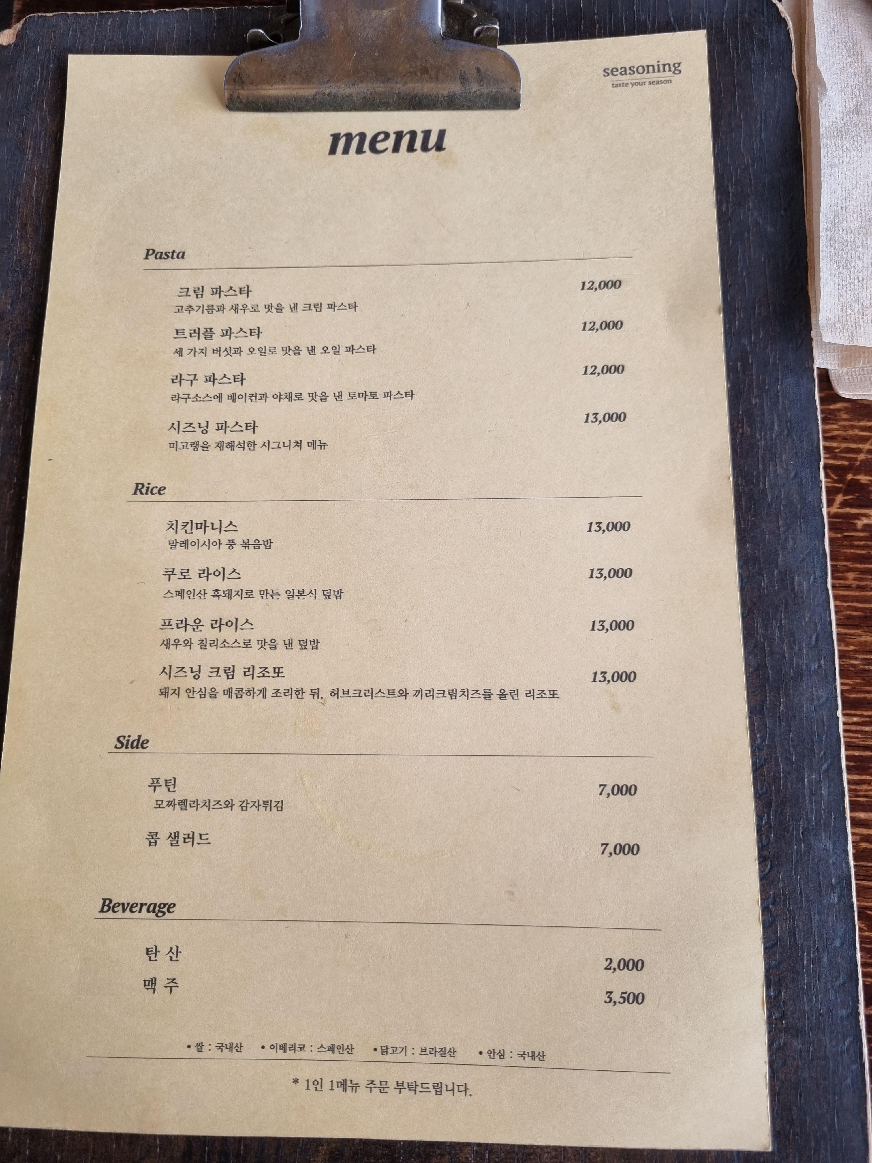 시즈닝에 왔으니, 시즈닝파스타 먹어야죠 ㅎㅎ