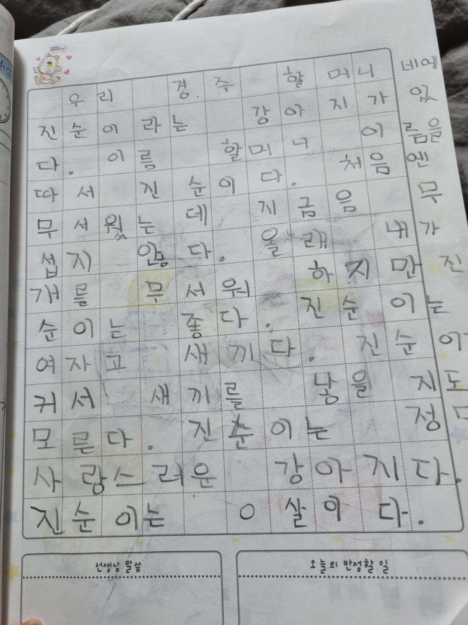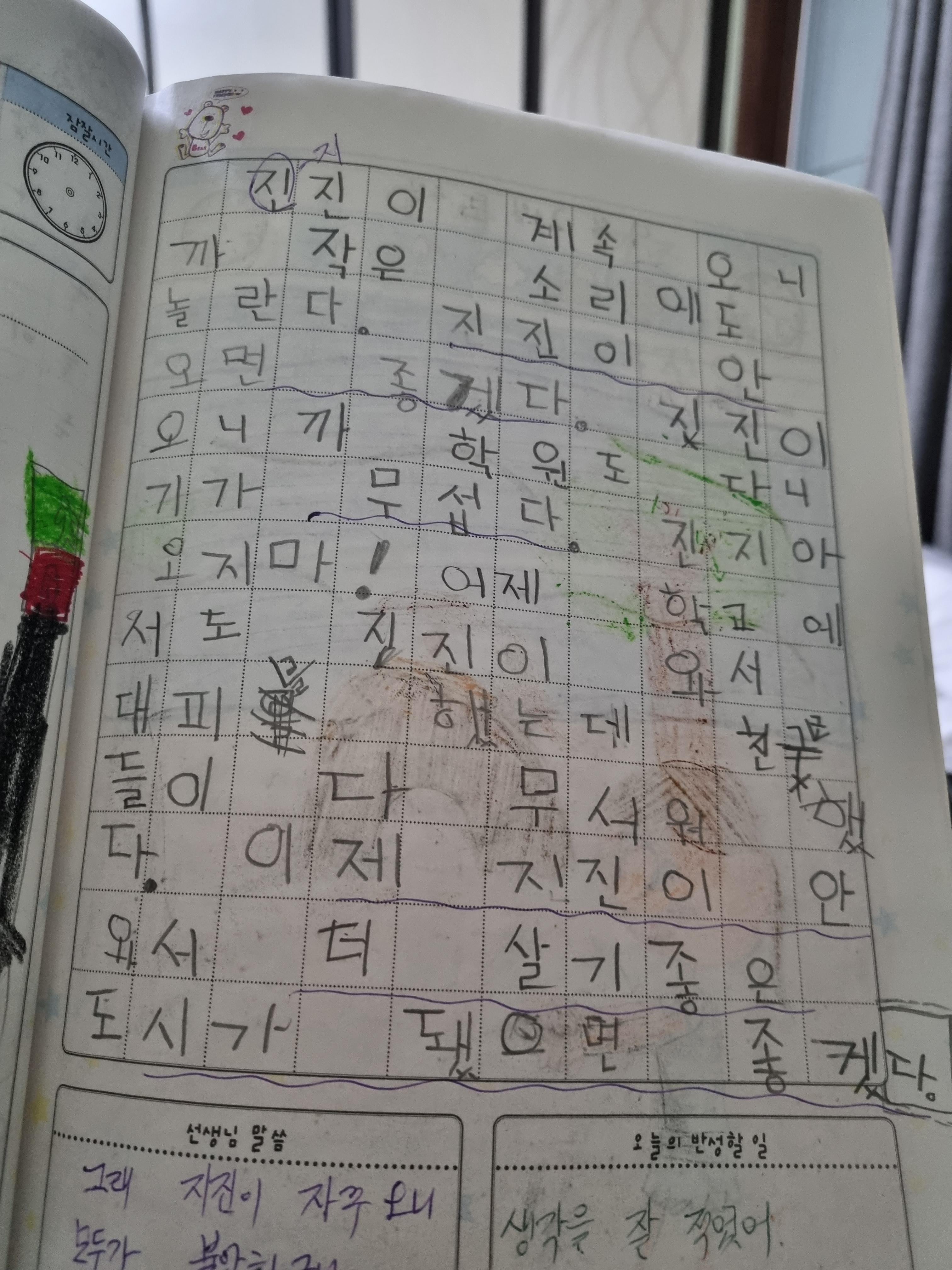1학년이라도 지진ㅡ진지라고 쓴 건 좀 ㅋㅋ