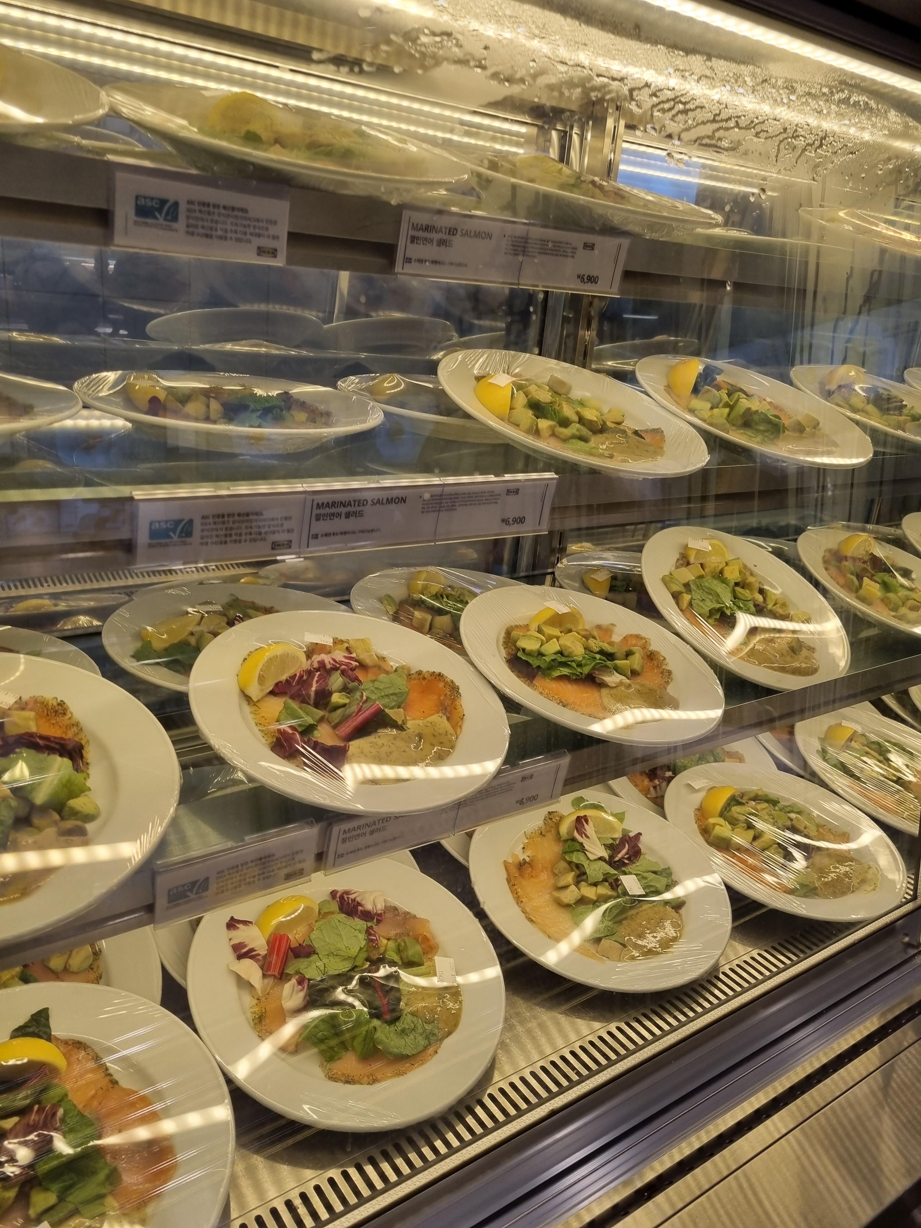 직원분에게 여쭤보니 일단 가서 음식을 카트에 담아와서 계산하면 된대요