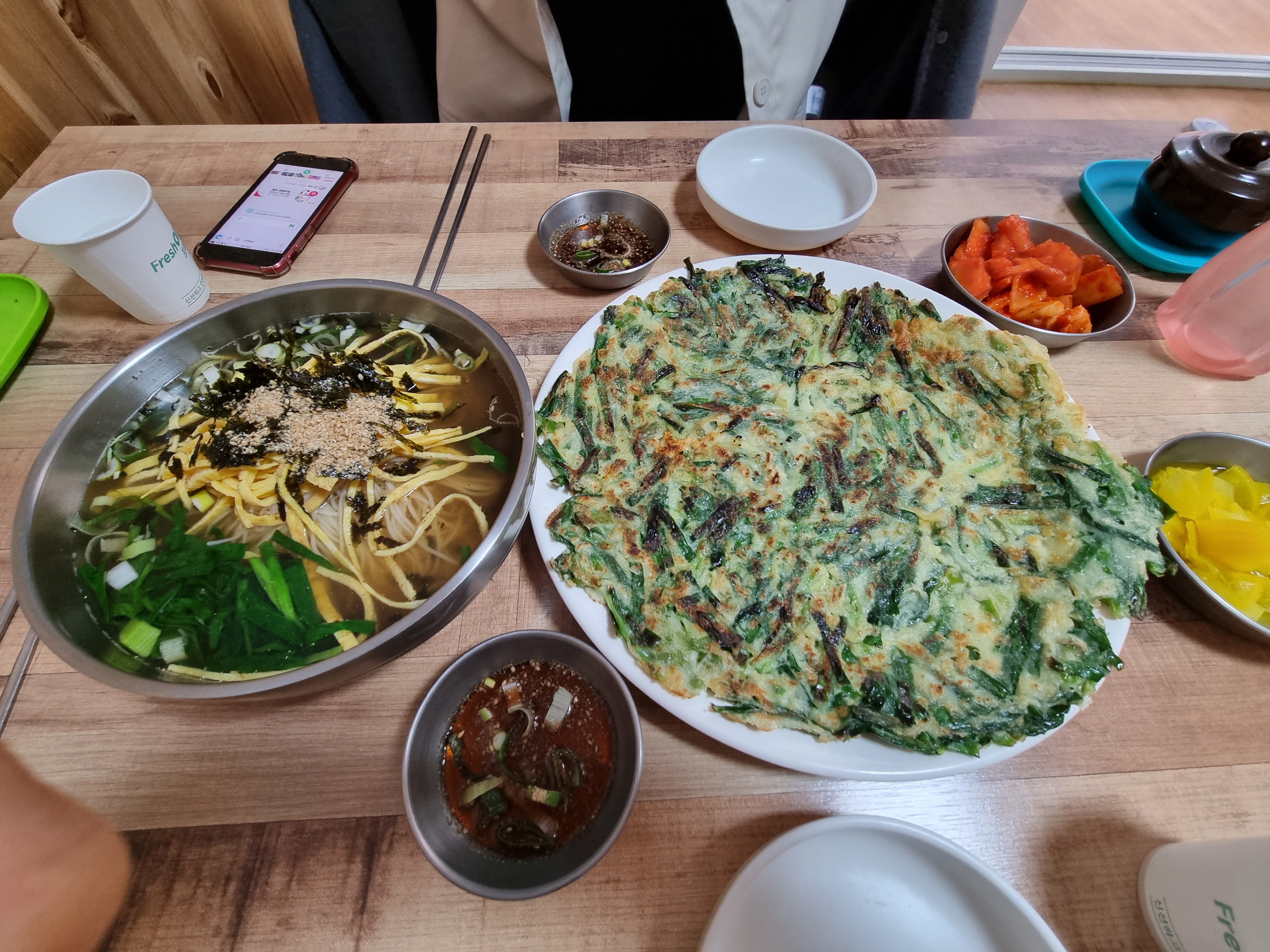 잔치국수 5000/ 부추전 6000 배불리 먹기
