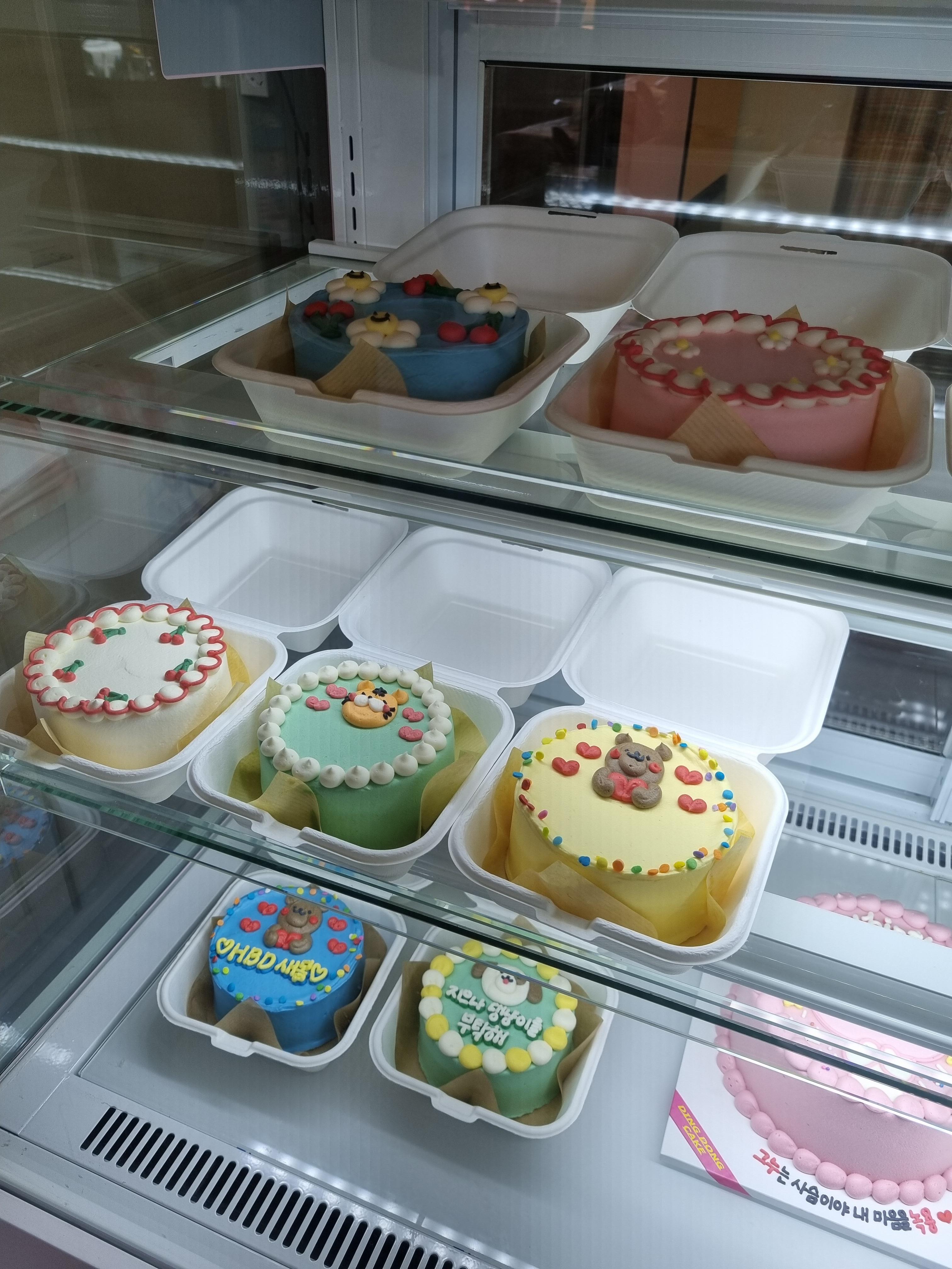 미니케익이나.. 좀더 큰 홀케익은 2일전에 주문하면 원하는 디자인대로 만들어주신대요~