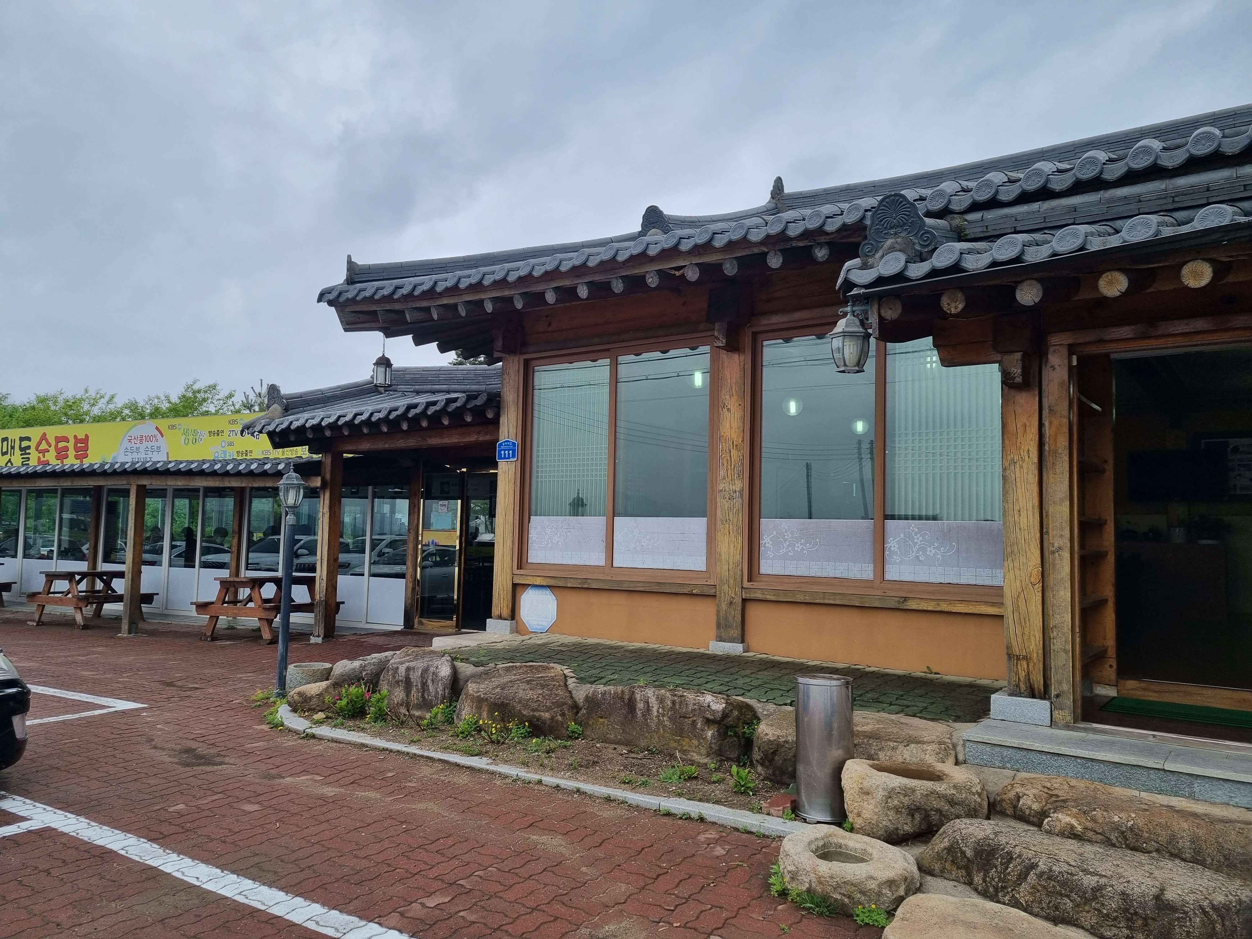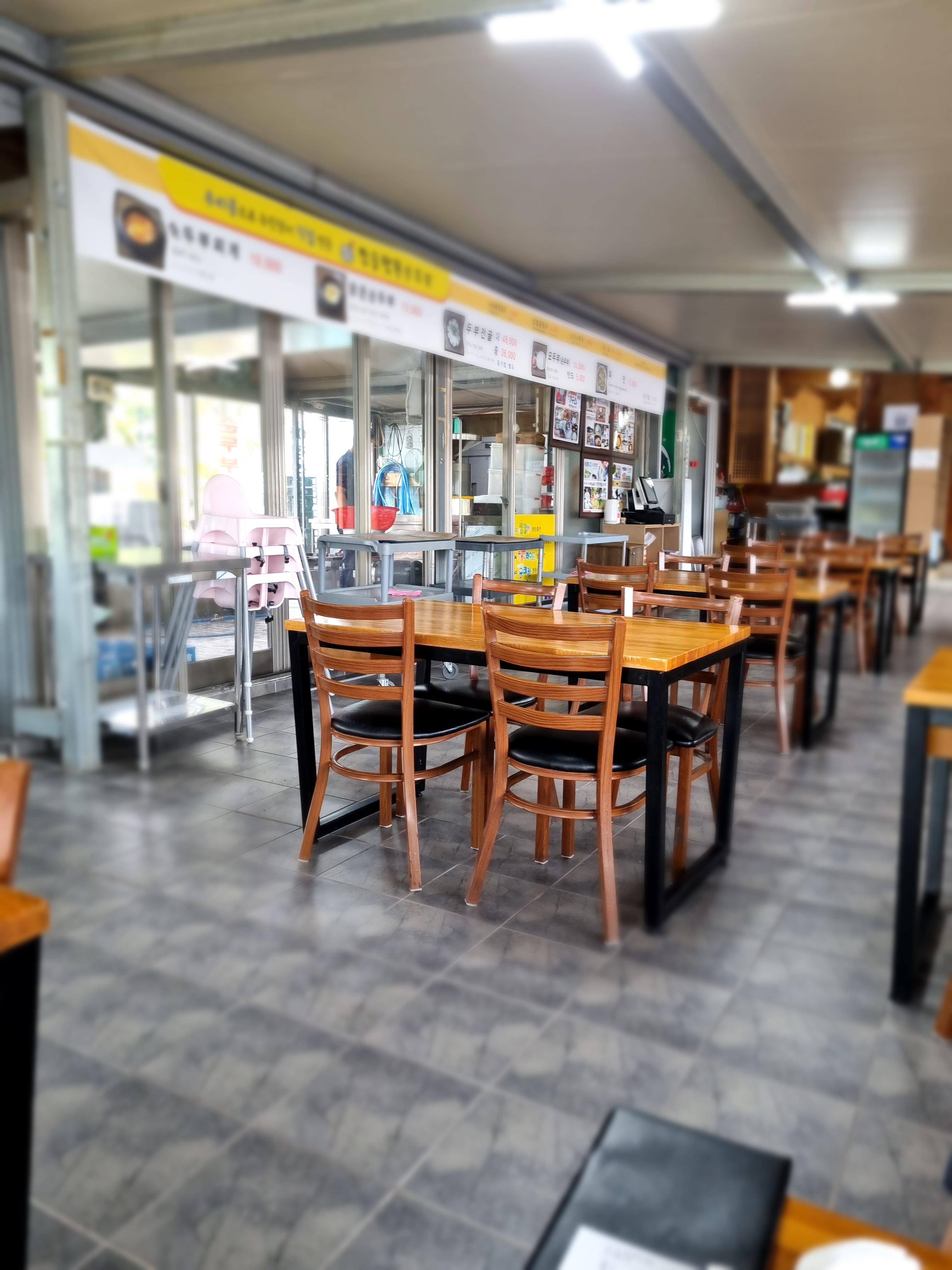 한옥건물과 조립식 건물이 이어져있는데, 조립식 건물 내부에 한쪽에선 직접 두부를 만들고 계셔요