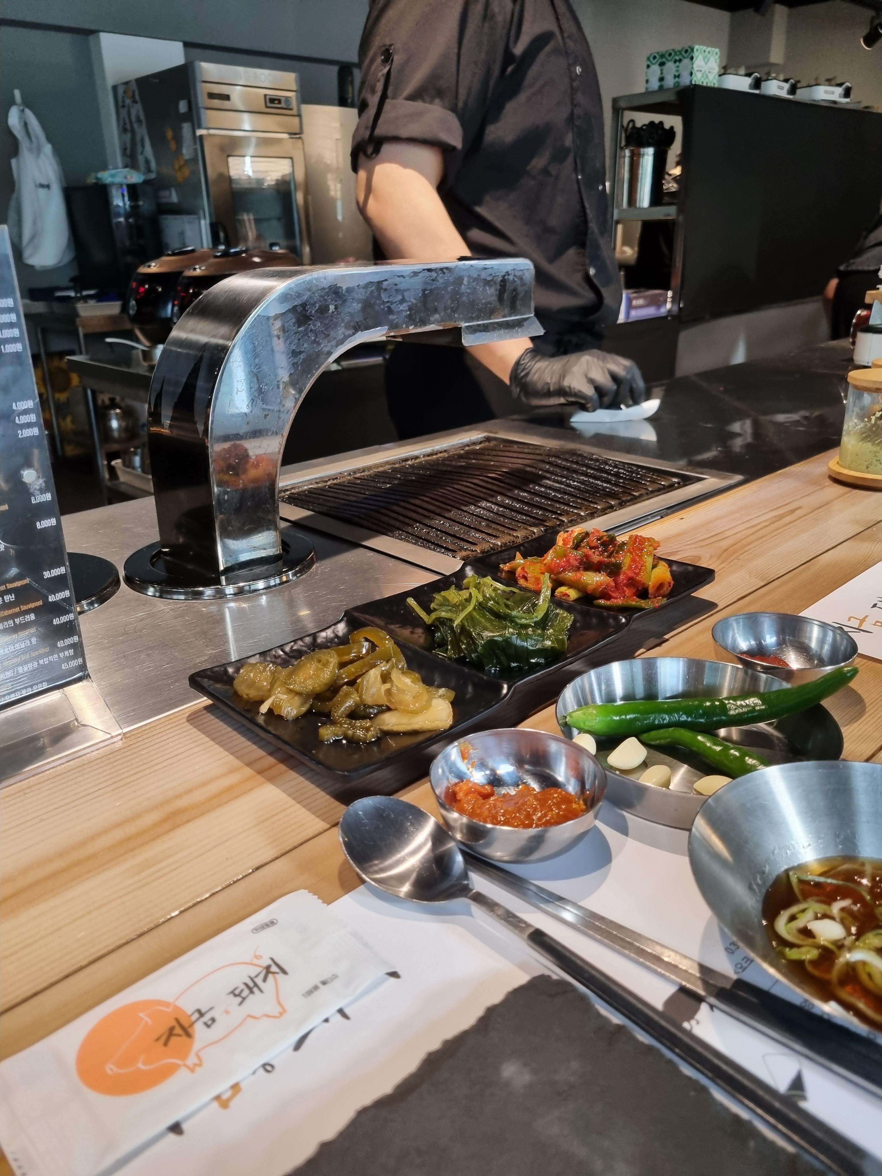 일반적인 삼겹살 집하고 다른 Bar형태의.. 인테리어도 좋고..그래서 빠른 손님 대응도 되구요~