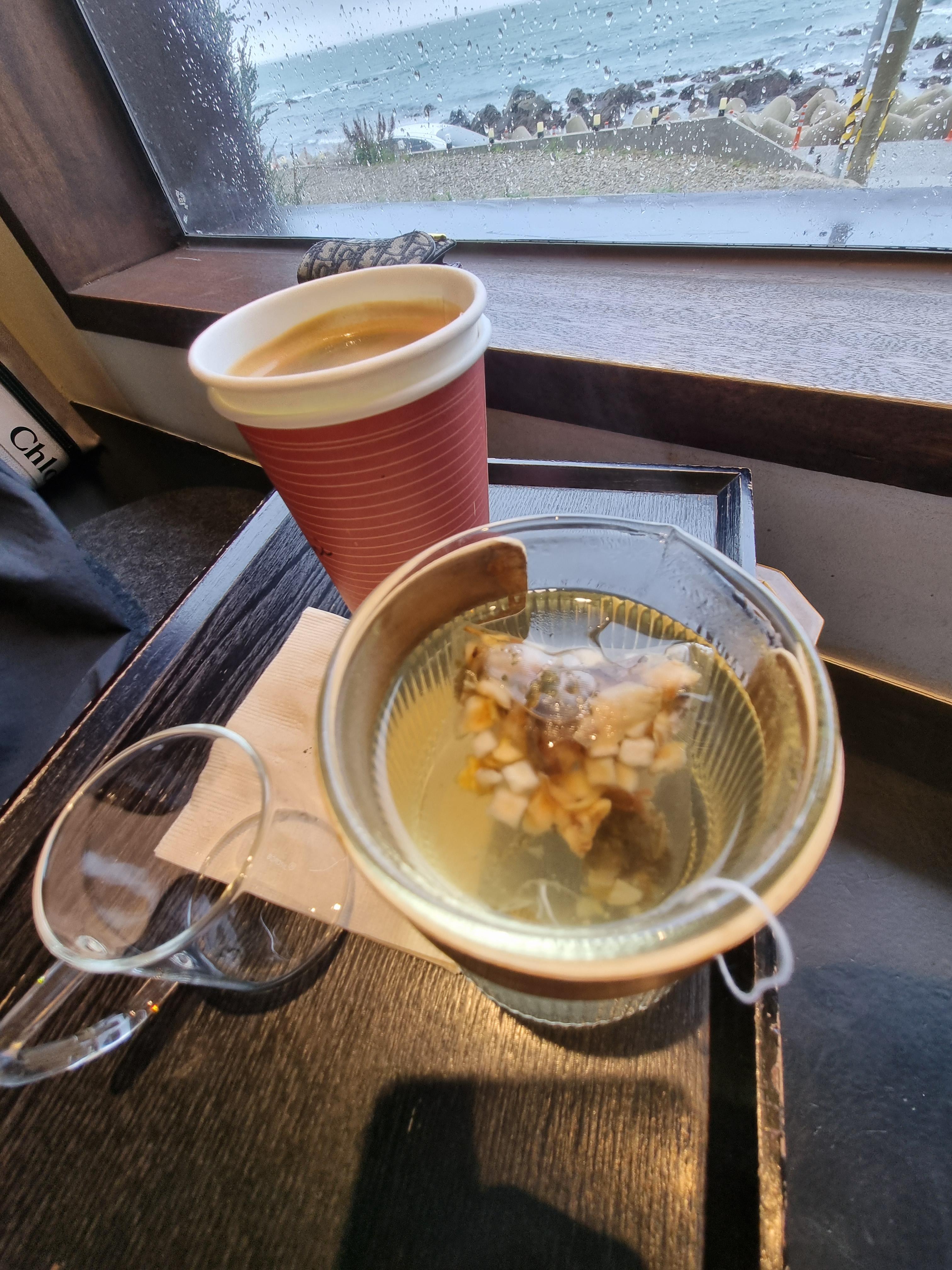 비가 온 날이라서, 바람도 심하고그래서 따뜻한 티와 아메리카노를 시켰어요