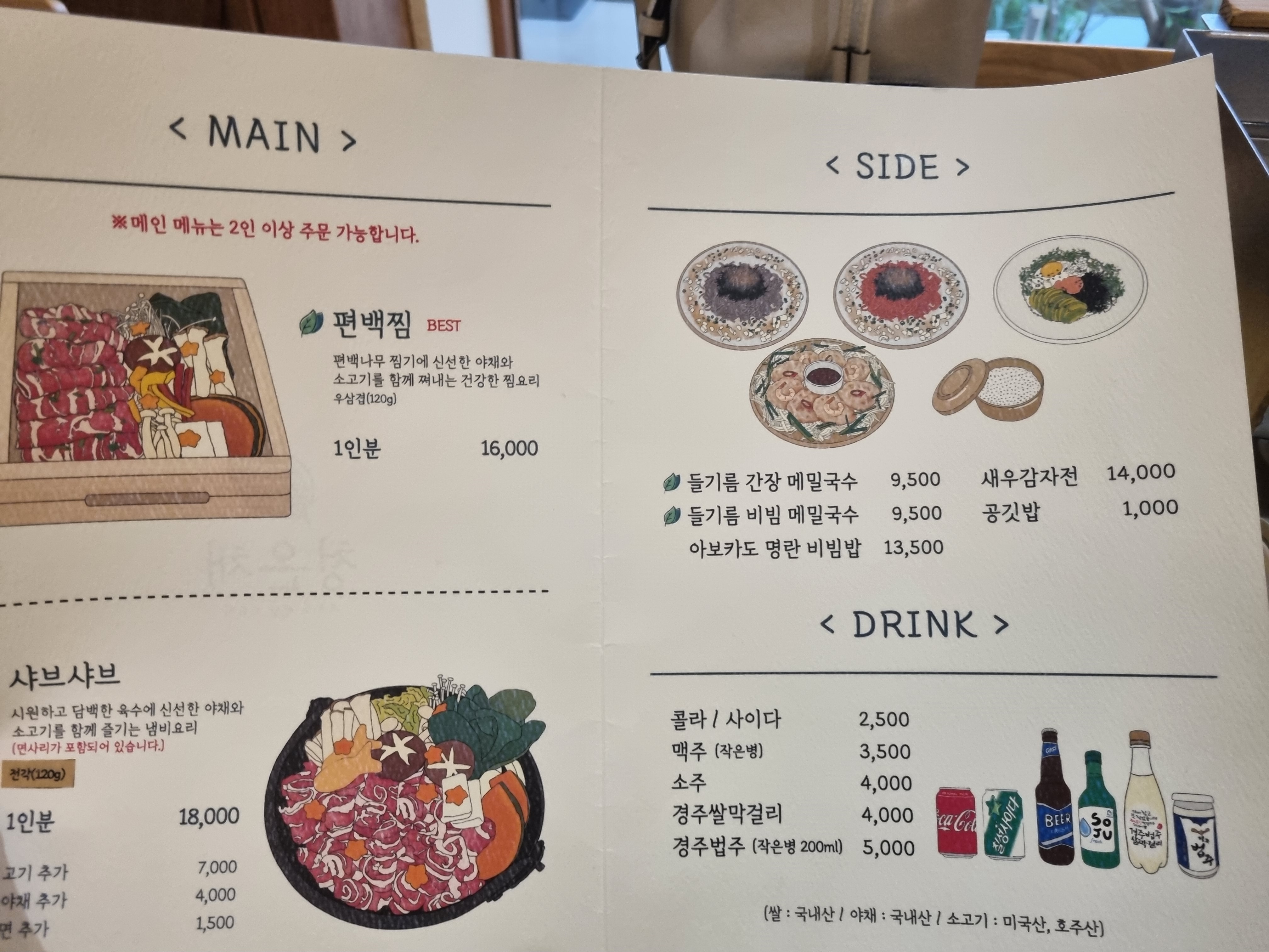 메뉴판 그림도 이쁘다 ㅎㅎ