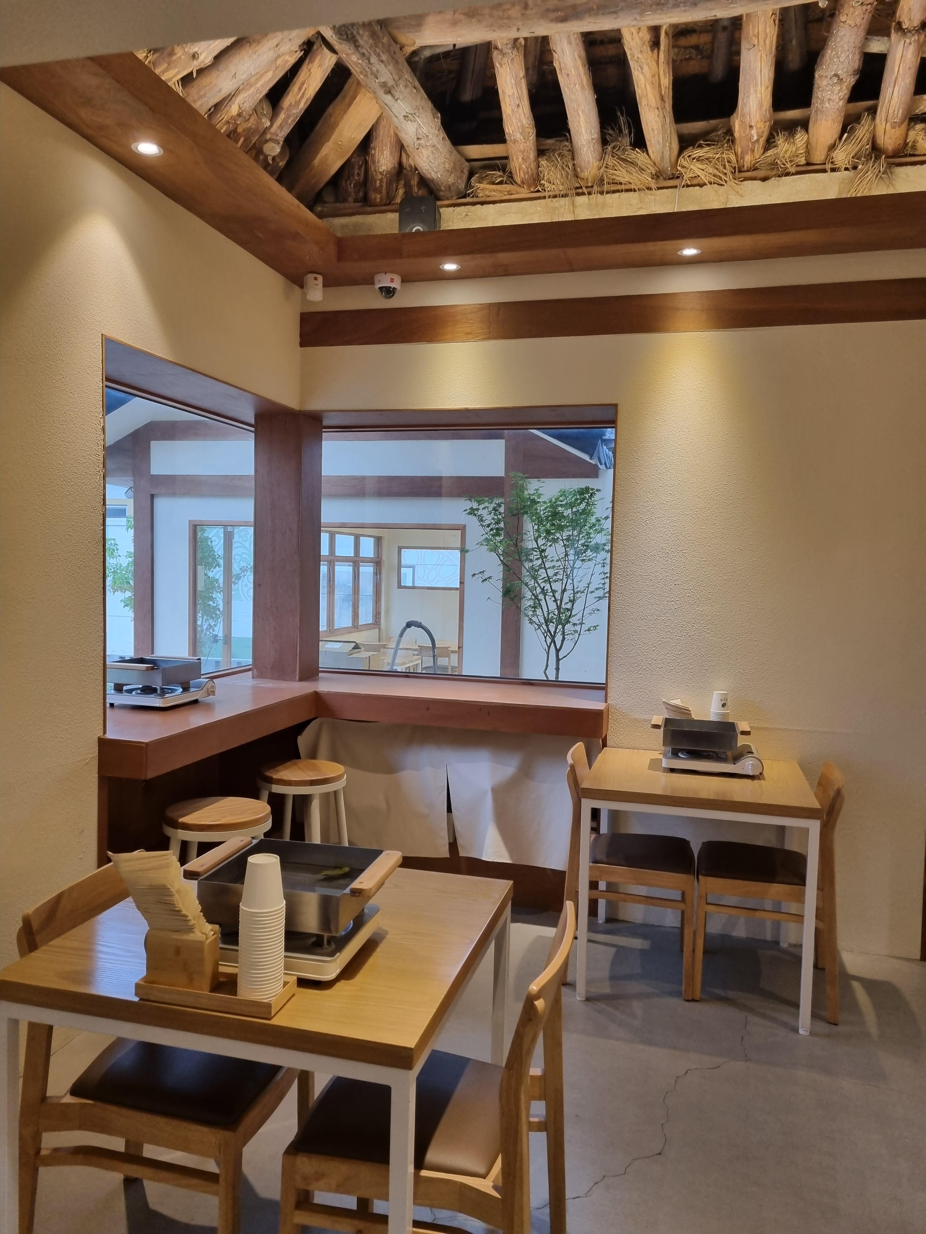옛 한옥 천장을 그대로 살렸지만 내부는 무척 깔끔한 식당이네요~~