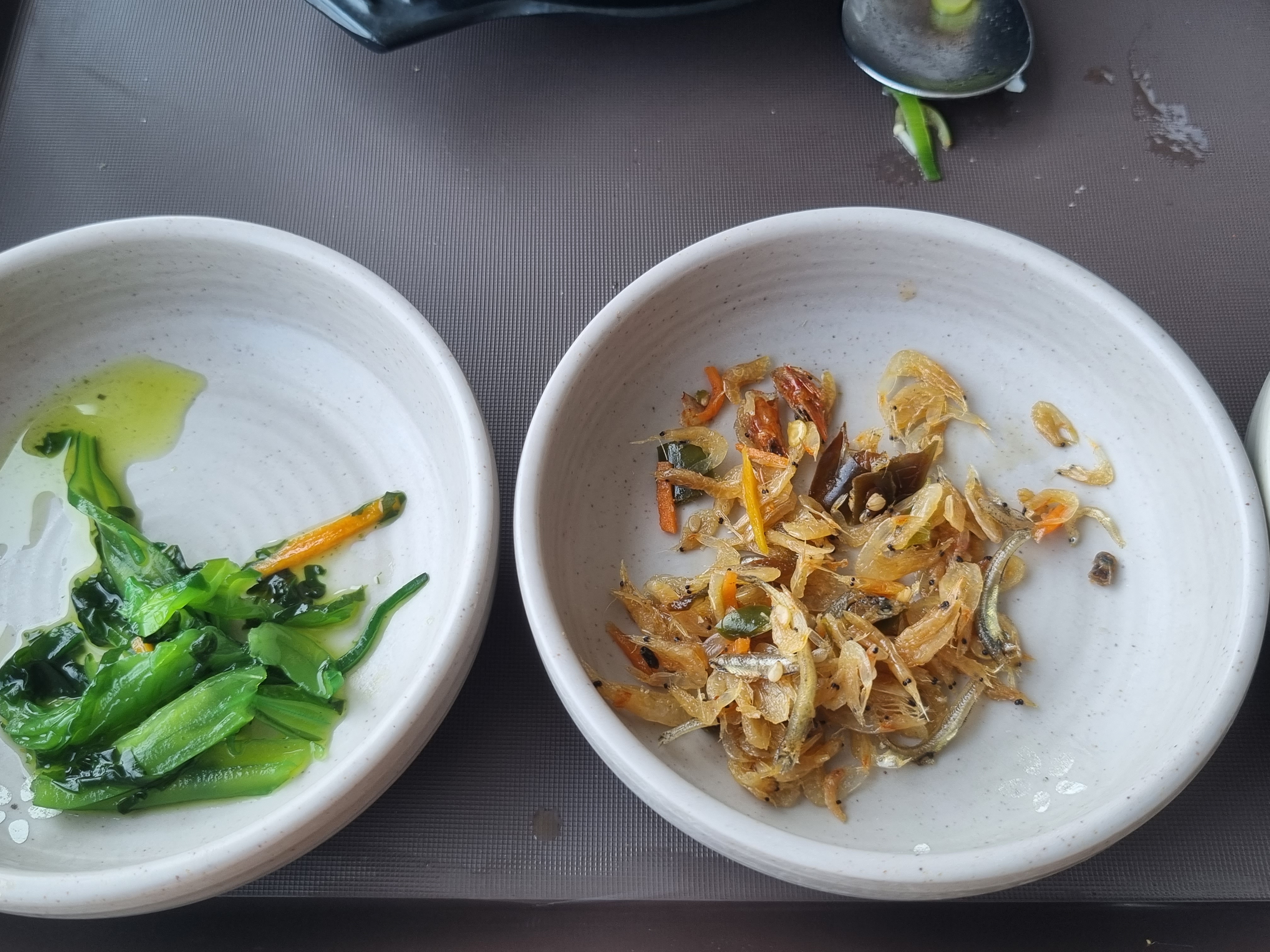정말 찌끄레기 긁어모아 만든 거 같은 새우멸치볶음과 저 초록색.. 아이가 한입먹더니 뱉으려고 하더라구요..전 안먹었습니다..