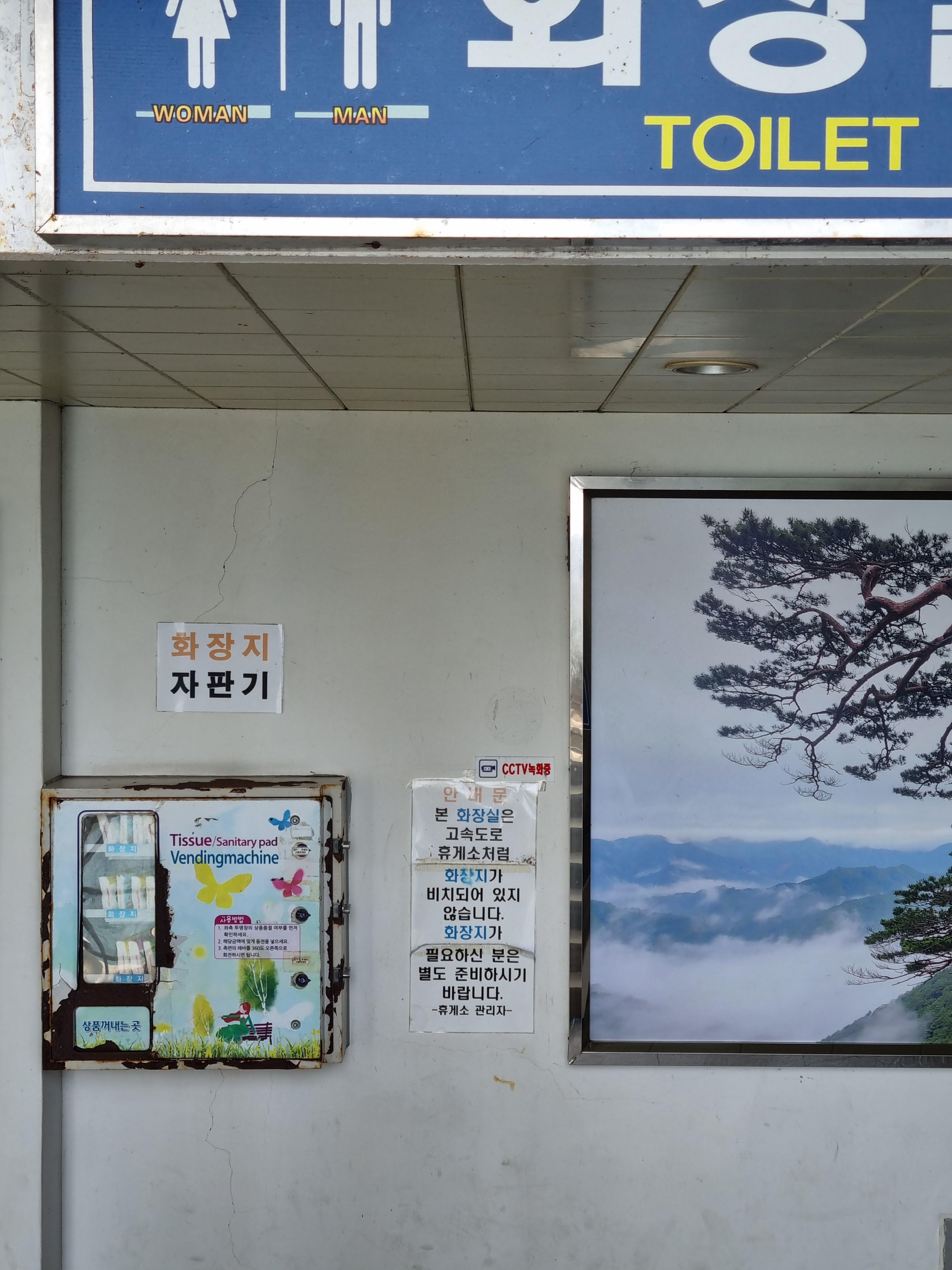 여긴,휴지가없어요..고속도로휴게소가 아니라서 그렇데요..저,.휴지자판기서 뽑아가시던가..차에서 가지고 가셔야..계단 오르락 내리락 안하십니다ㅎ