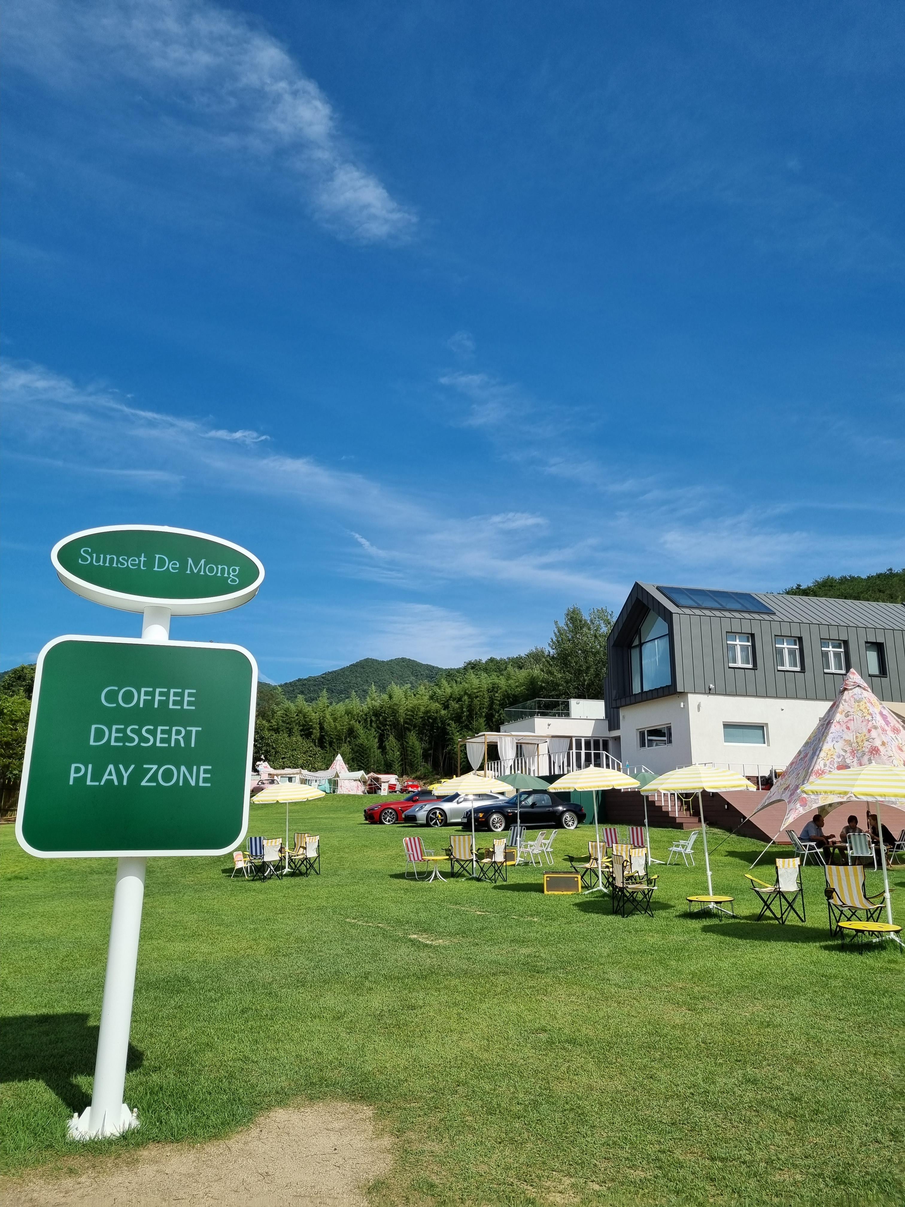 뜬금없이 카페가 있어요.. 잔디밭과 아이들 놀 수 있는 모래사장까지 규모가 무척 큰 카페예요