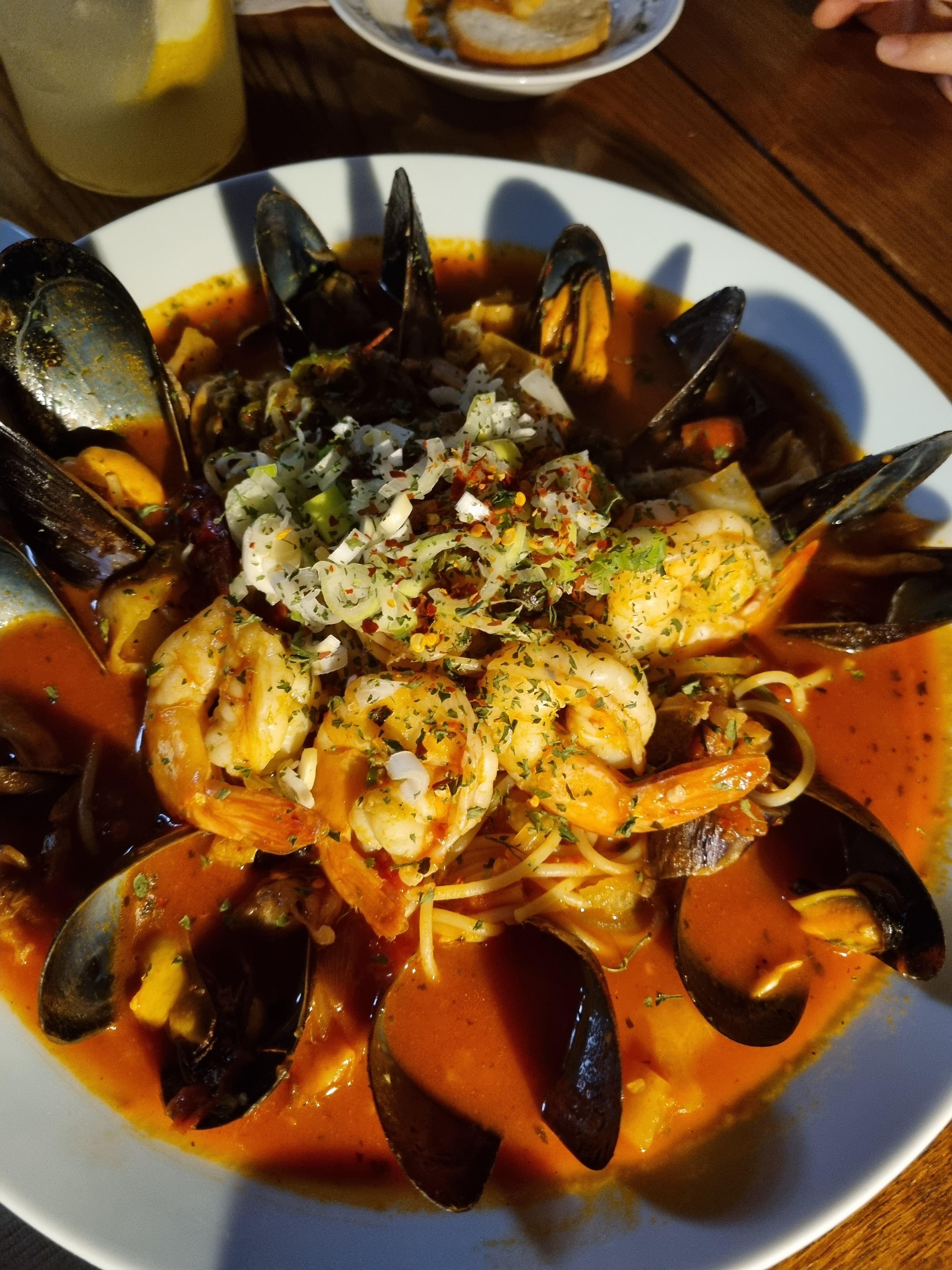 이 얼큰 파스타~~ 진짜 얼~큰한데 자꾸 자꾸 손이 가요.. 짬뽕인듯 파스타인듯 토마토소스 베이스에 얼큰함에 해문 가득..제일 기억에 남는 메뉴네요