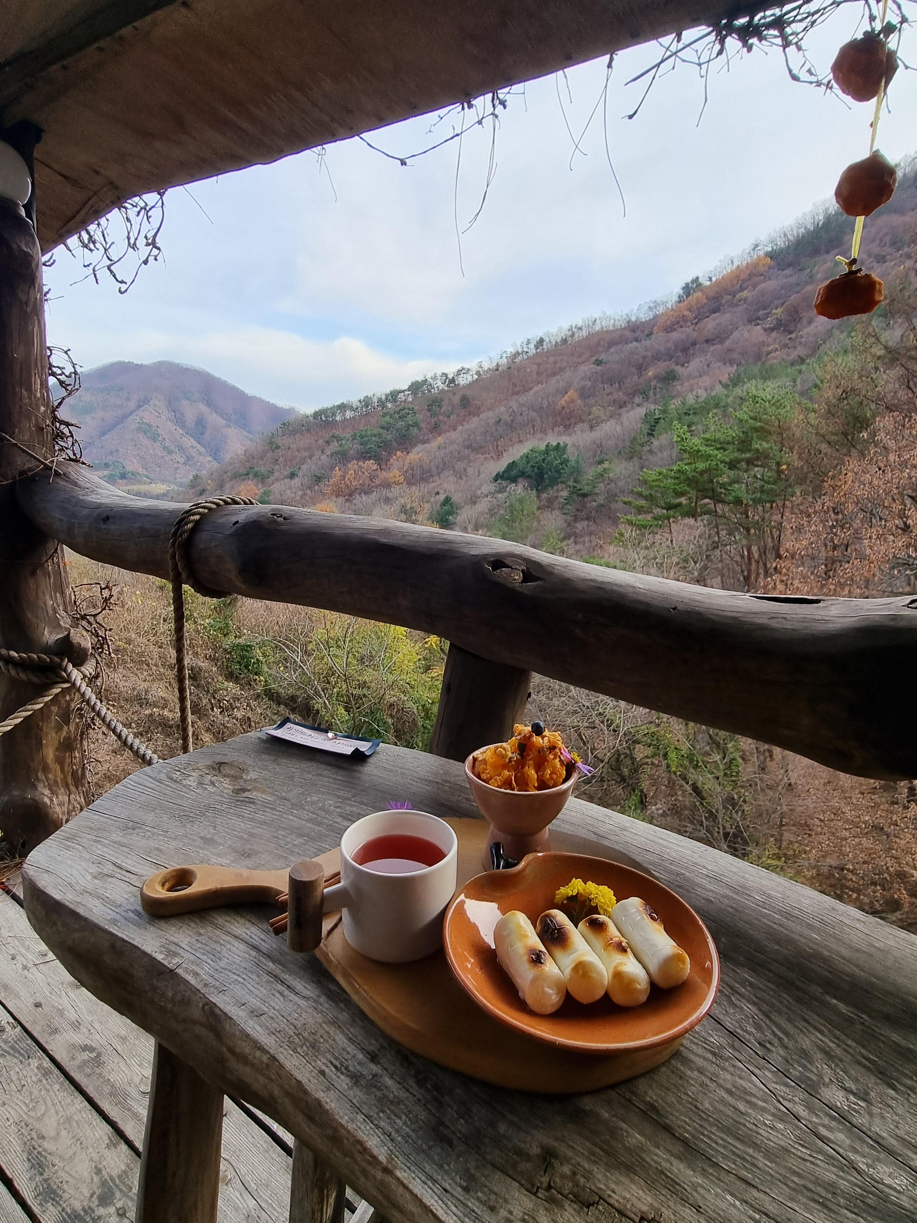 산장의 먹거리에는 풍경값이 더해져있대요. 주말에는 한 시간씩 기다려야 한다니...ㅎㅎ인기 만점인 곳 맞네요