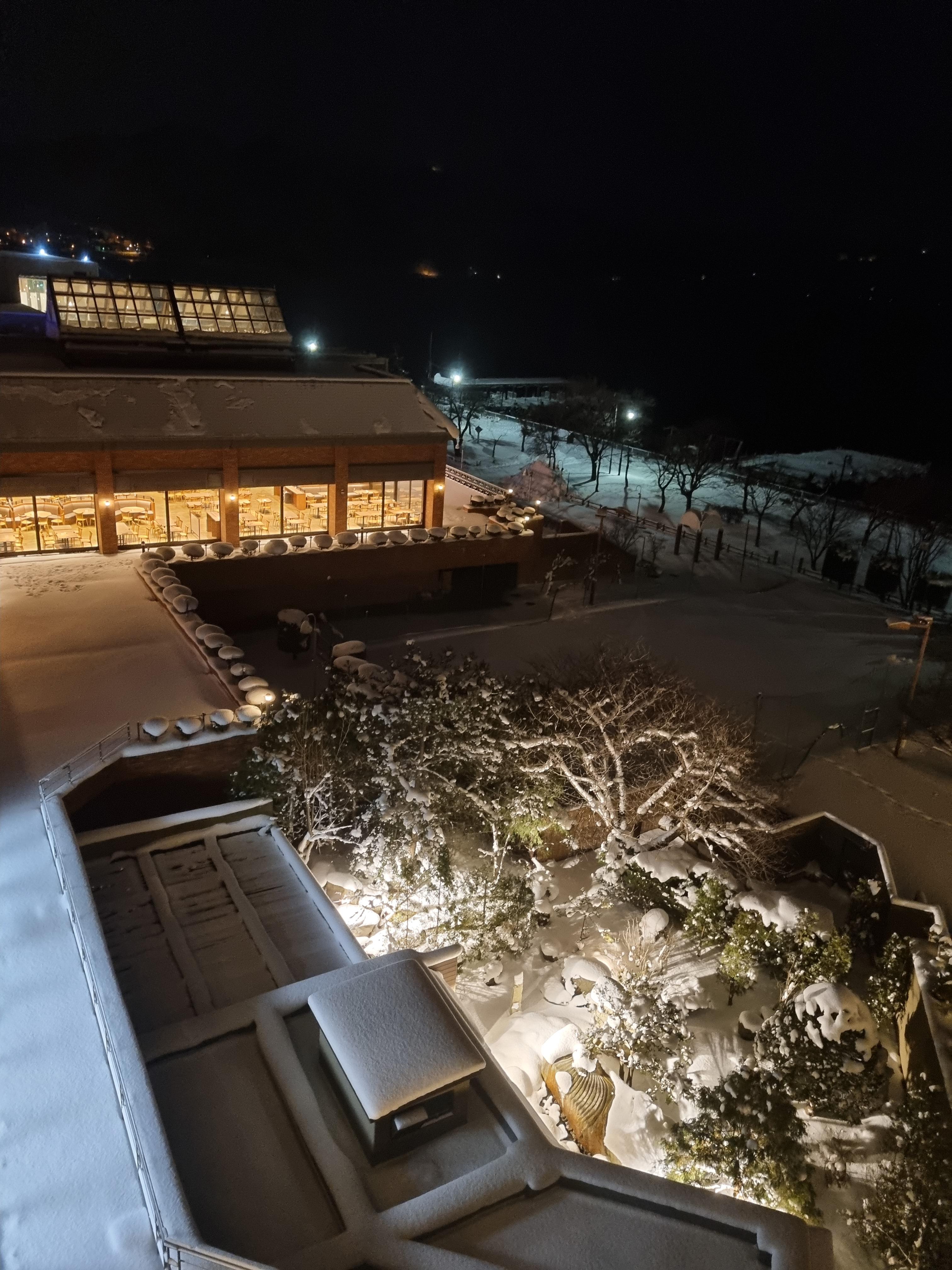 눈이 나무가지마다 가득쌓인 아름다운 정원바라보며 온천하는데 너무 운치있었어요