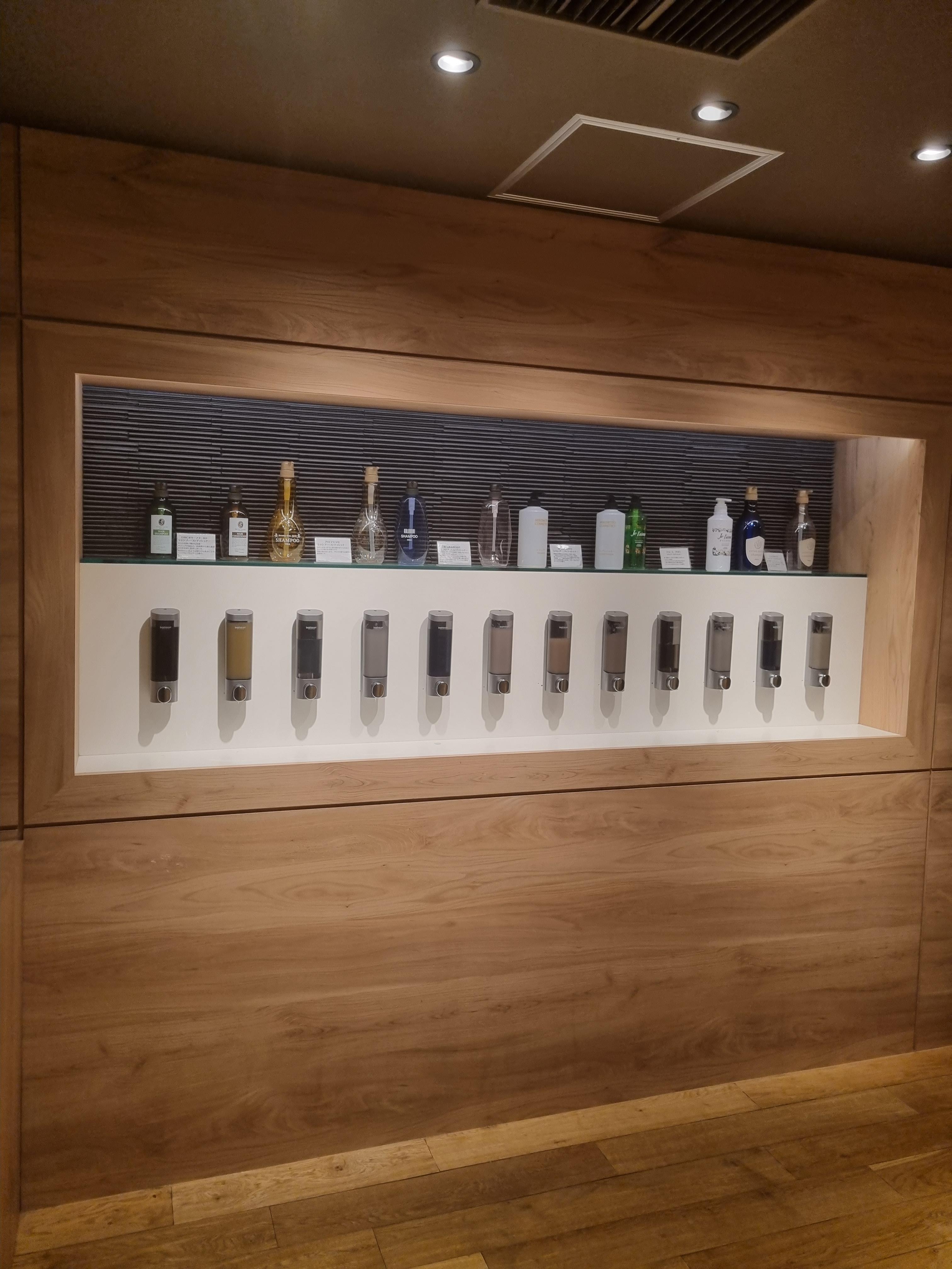 내부에도 물론 샴푸.린스.바디워시등이 자리마다 다 있지만, 입구에 다양한 샴푸 향 맡고 종이컵에 가지고 갈 수 있게 준비되어있어요