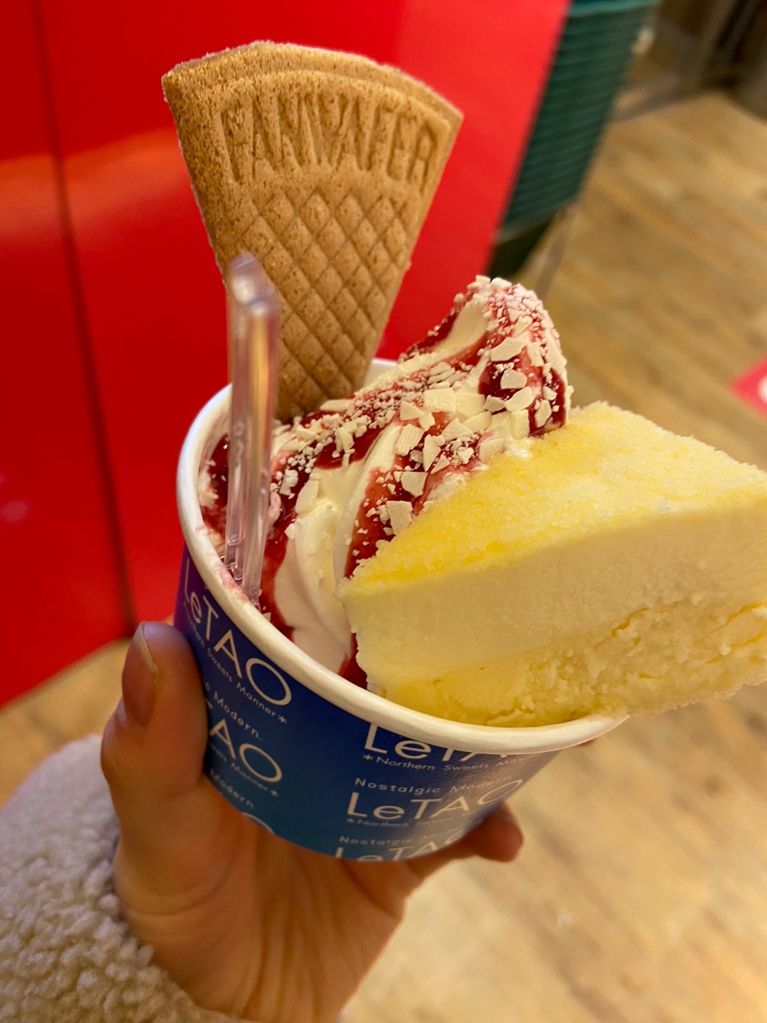 돌아오는 길에 치즈케익과 아이스크림이들어간 간식 사먹었는데 650 엔정도 했었어요