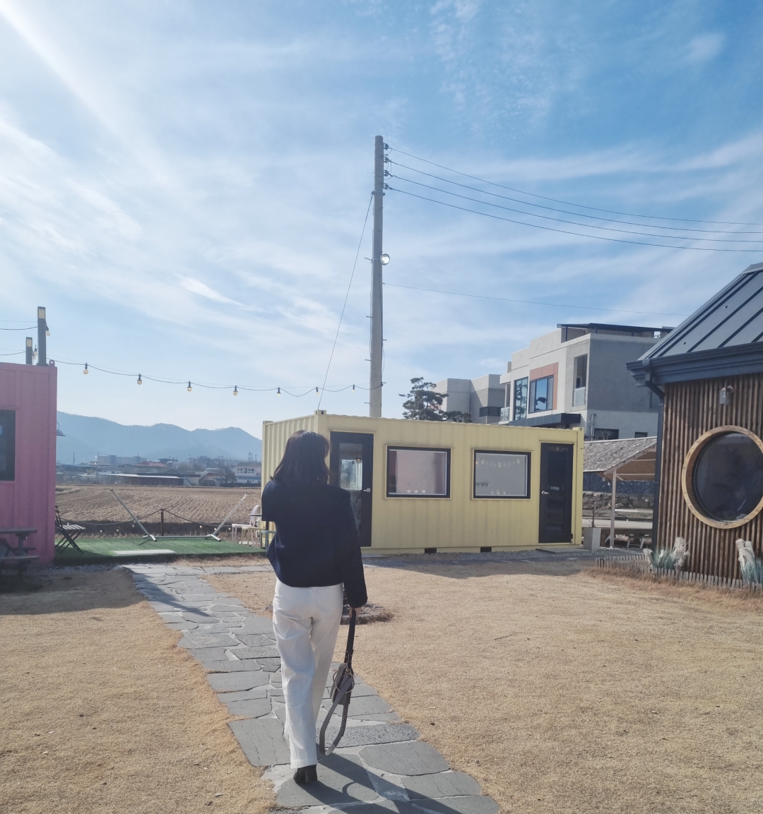 총 컨데이너 건물 3동과 텐트동으로 구성되어 있는 카페였어요~