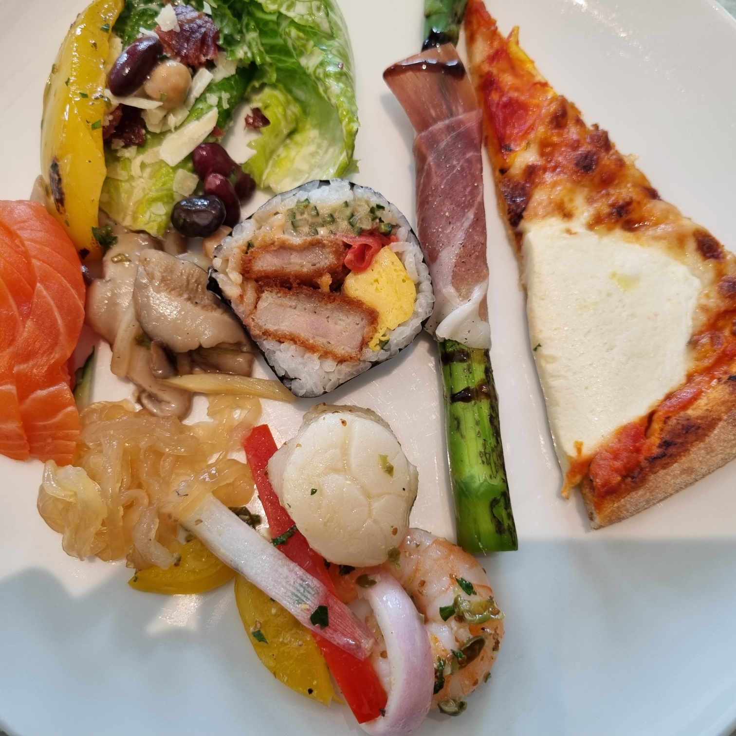 마리게리타 피자, 새우관자샐러드,시저샐러드 등 두번째 접시네요 ㅎ