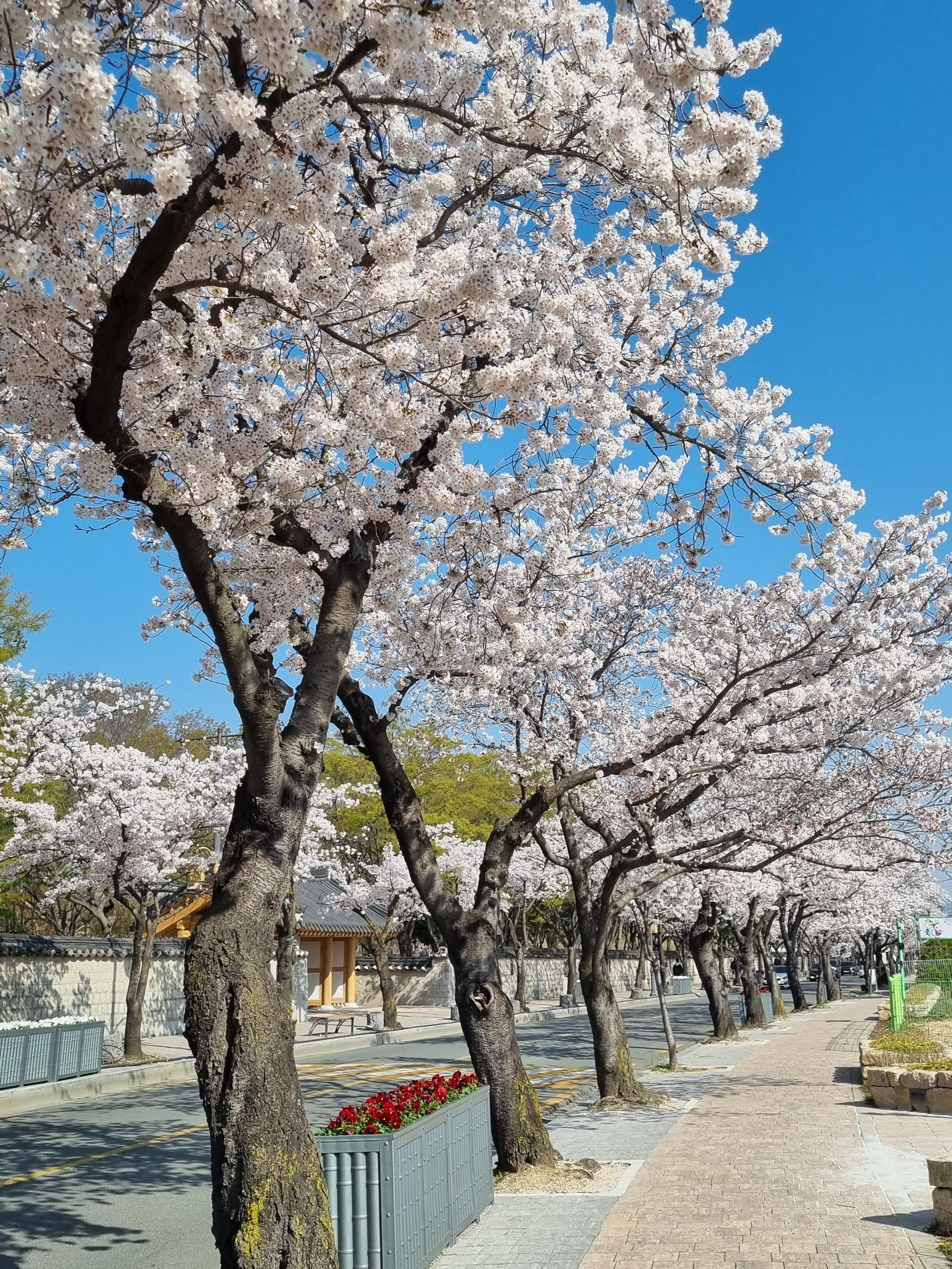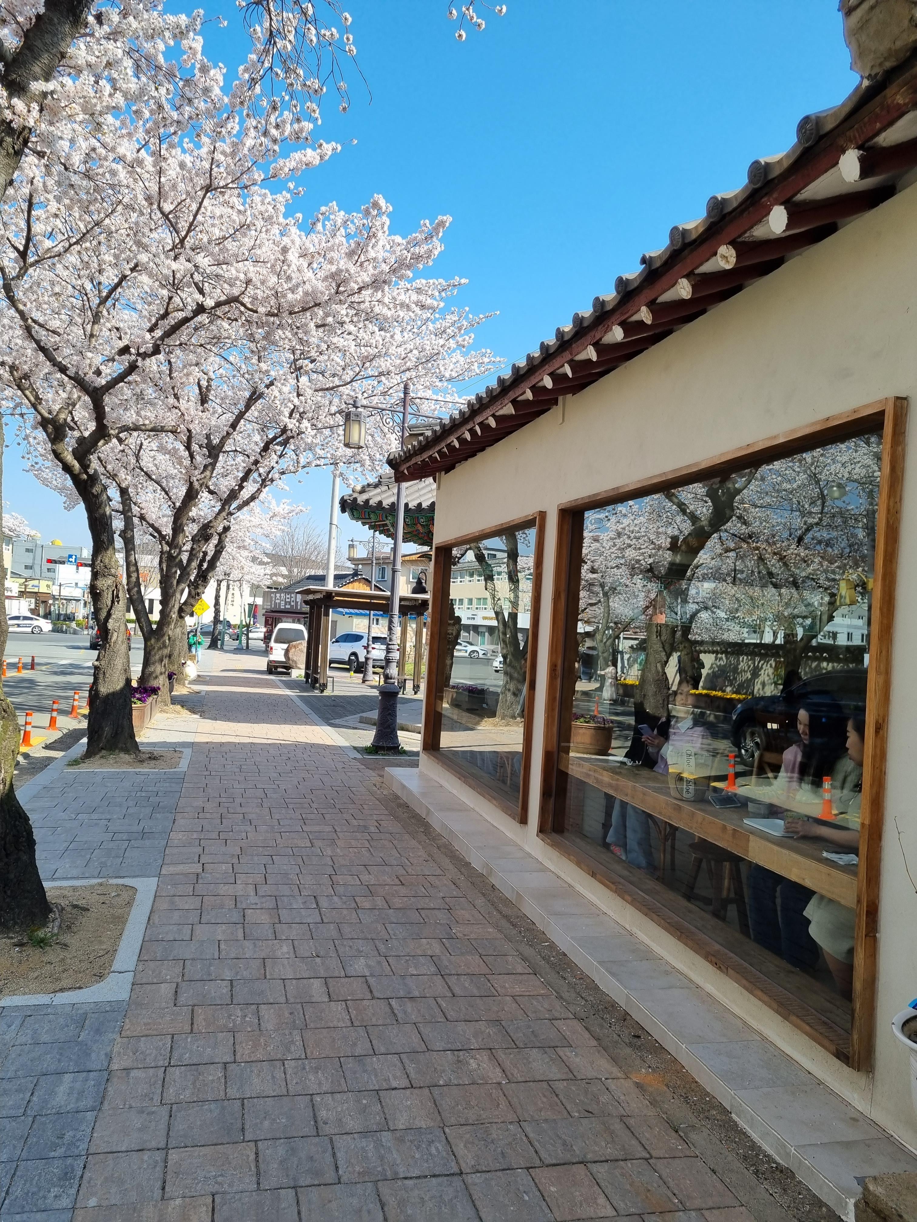 예쁜 벚꽃길을 따라 대릉원에서 황남빵집 쪽으로 걸어가요~~