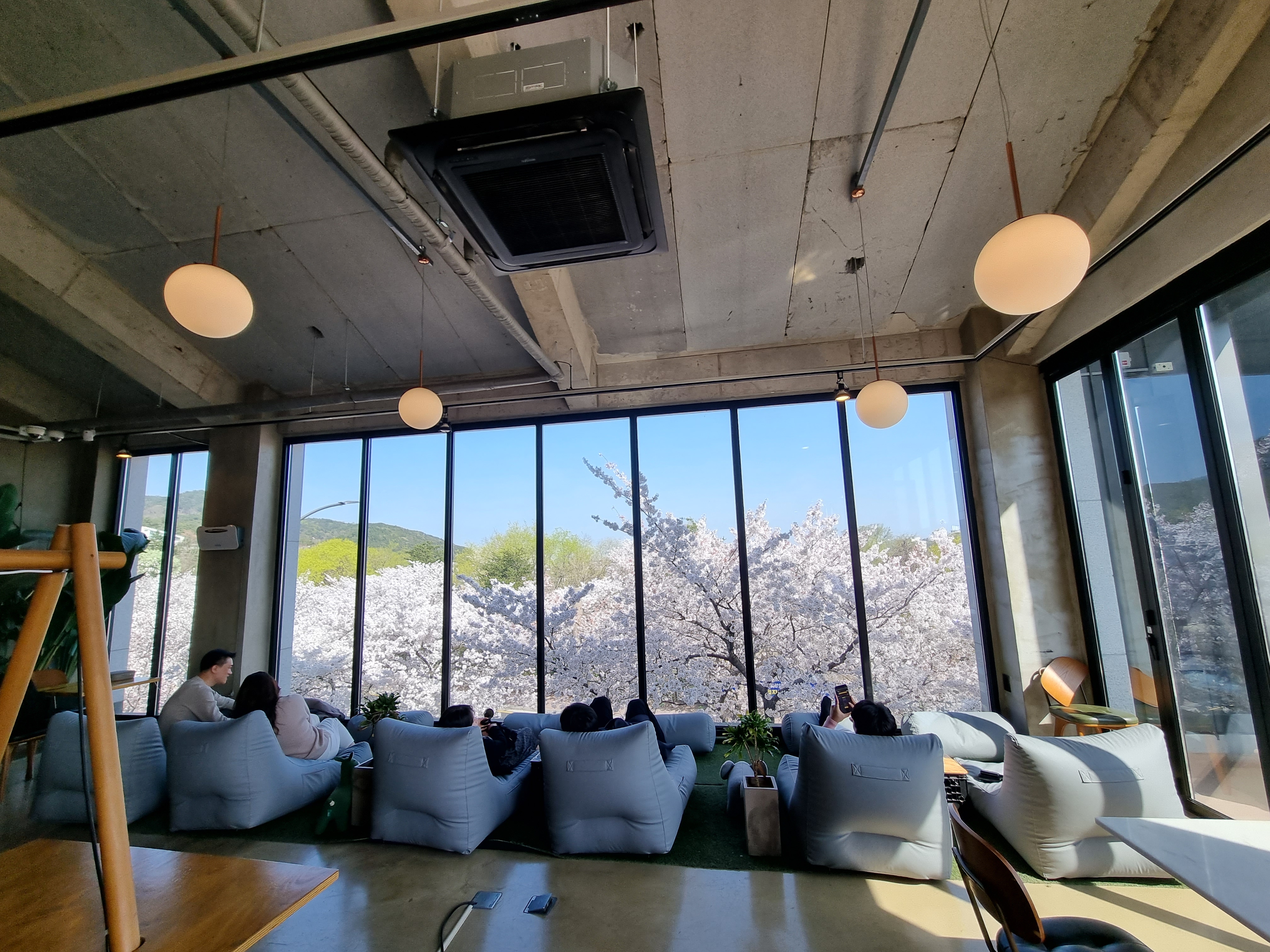 1층가득 벚꽃이 보이고 다 열려있어서 바람맞으며 차 마실 수 있어요