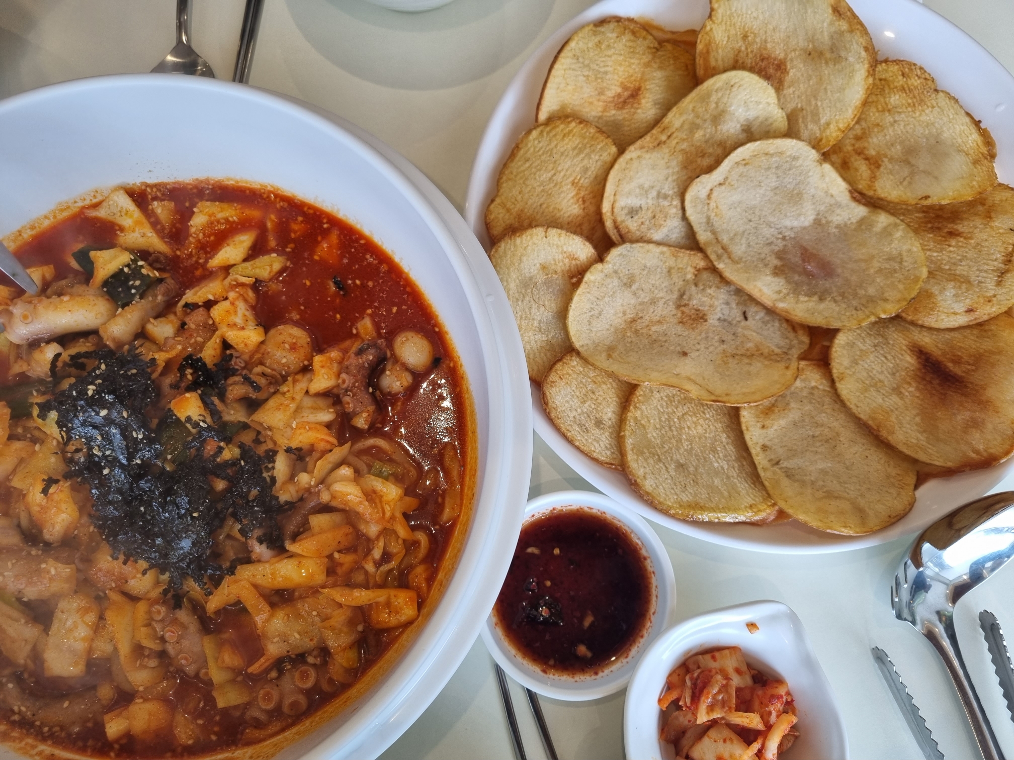 대부분 칼낙지에 감자전 많이 드셔요