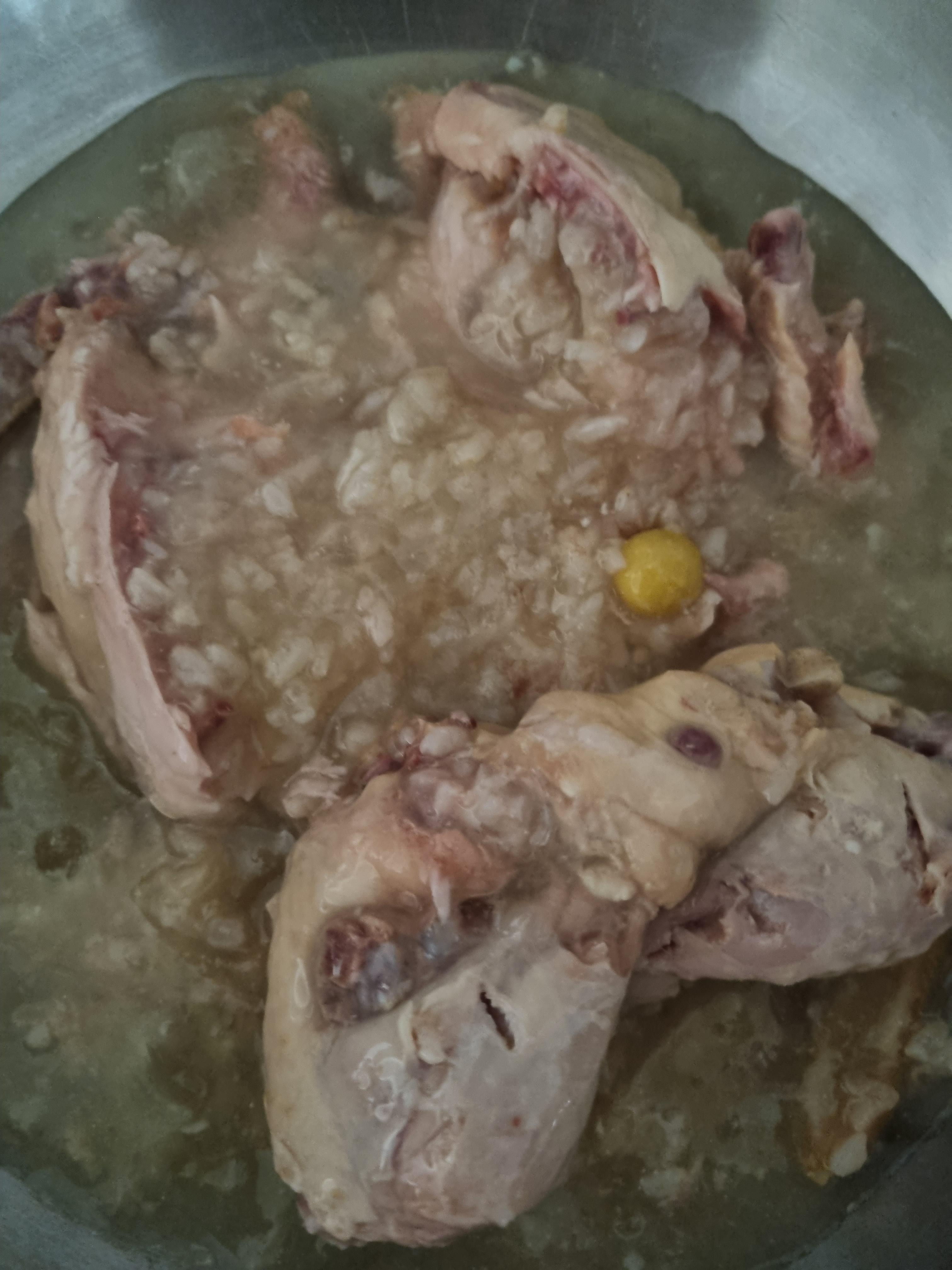 찹쌀을 머금고 있는 그럴듯한 삼계탕이에요