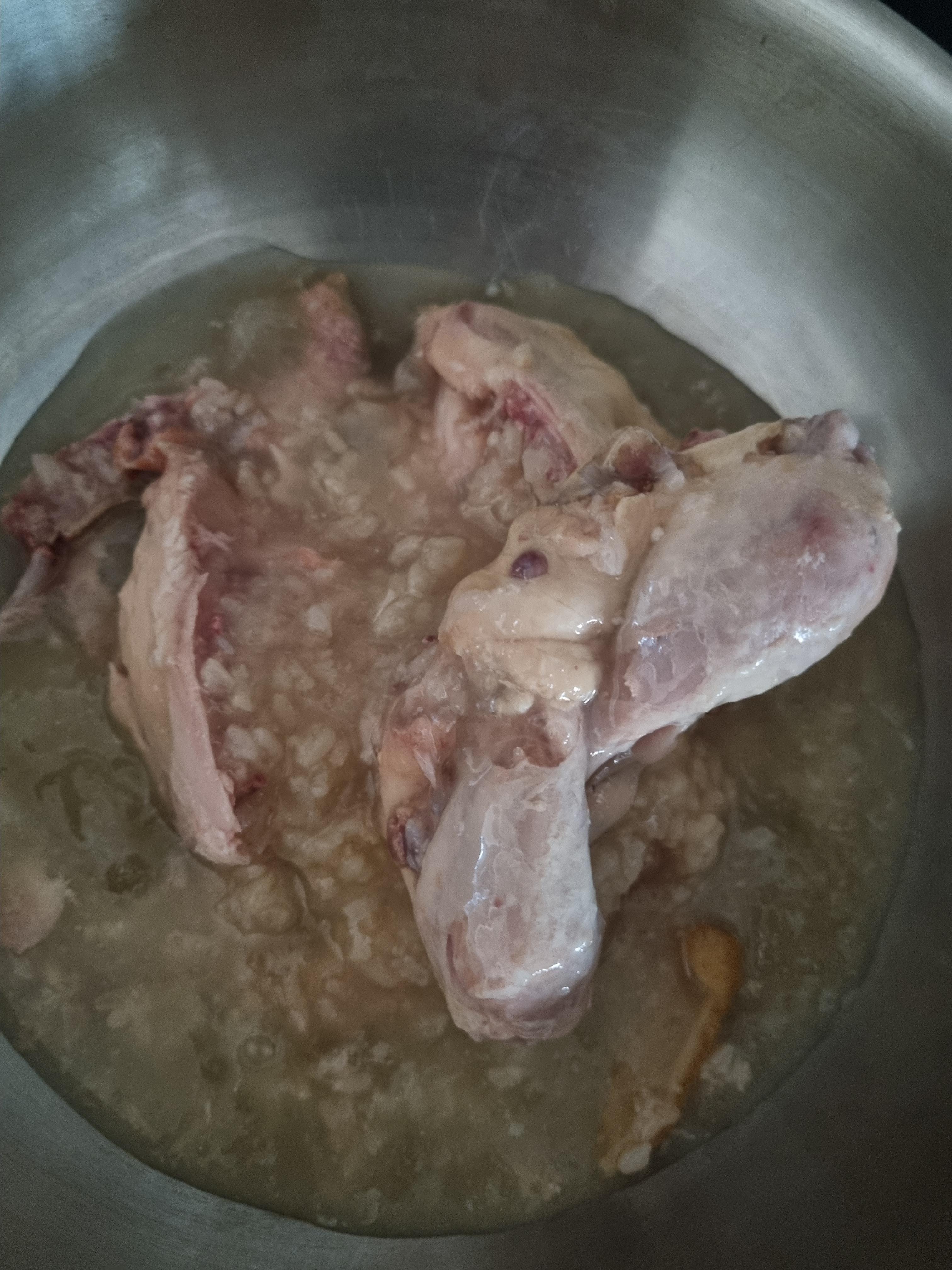 2봉지 부어놓은 양이구요. 물 좀더 넣고 전 찹쌀밥해서 넣어서 함께 끓여서