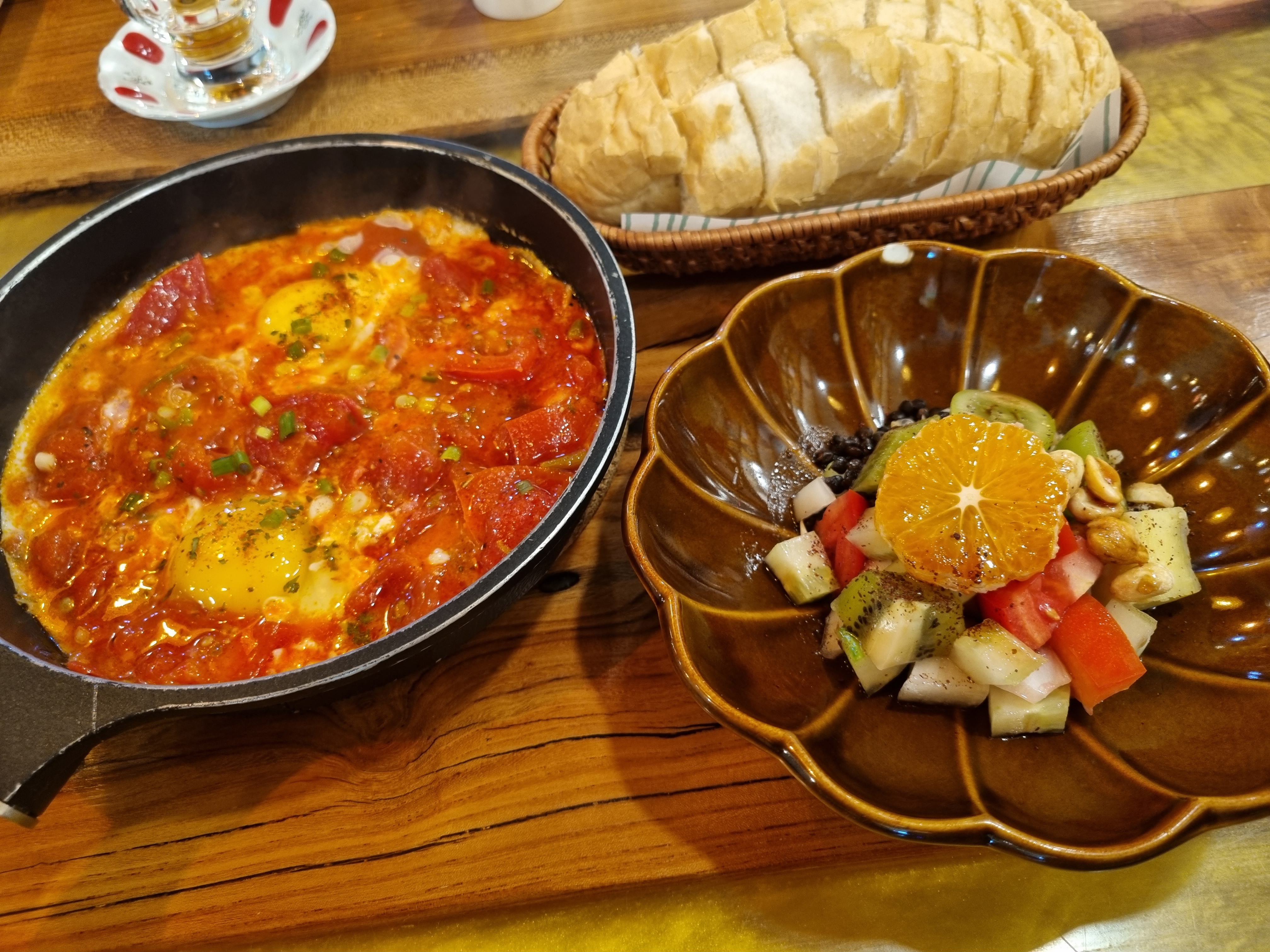 보리와 터키식조가 들어있는 과일채소샐러드 너무 맛있었구요, 계란과 토마토 소스에 폭신한 빵을 함께 먹는데 요고 맛있더라구요~
