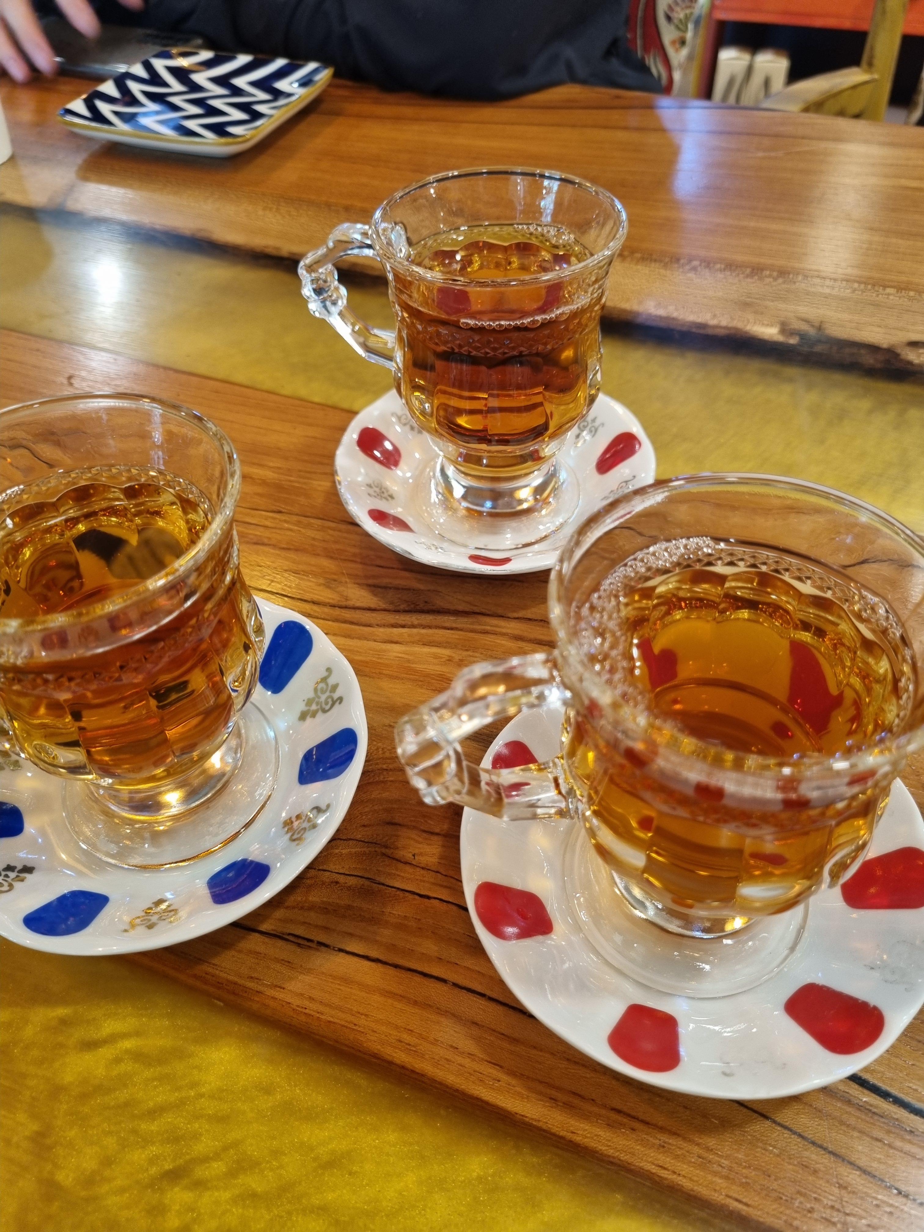 메뉴는 1인1메뉴 시켜야하구요. 이렇게 홍차가 제공되요~증기로끓인 터키식 홍차인데 마시면 계속 제공해주셔요.좋더라구요^^