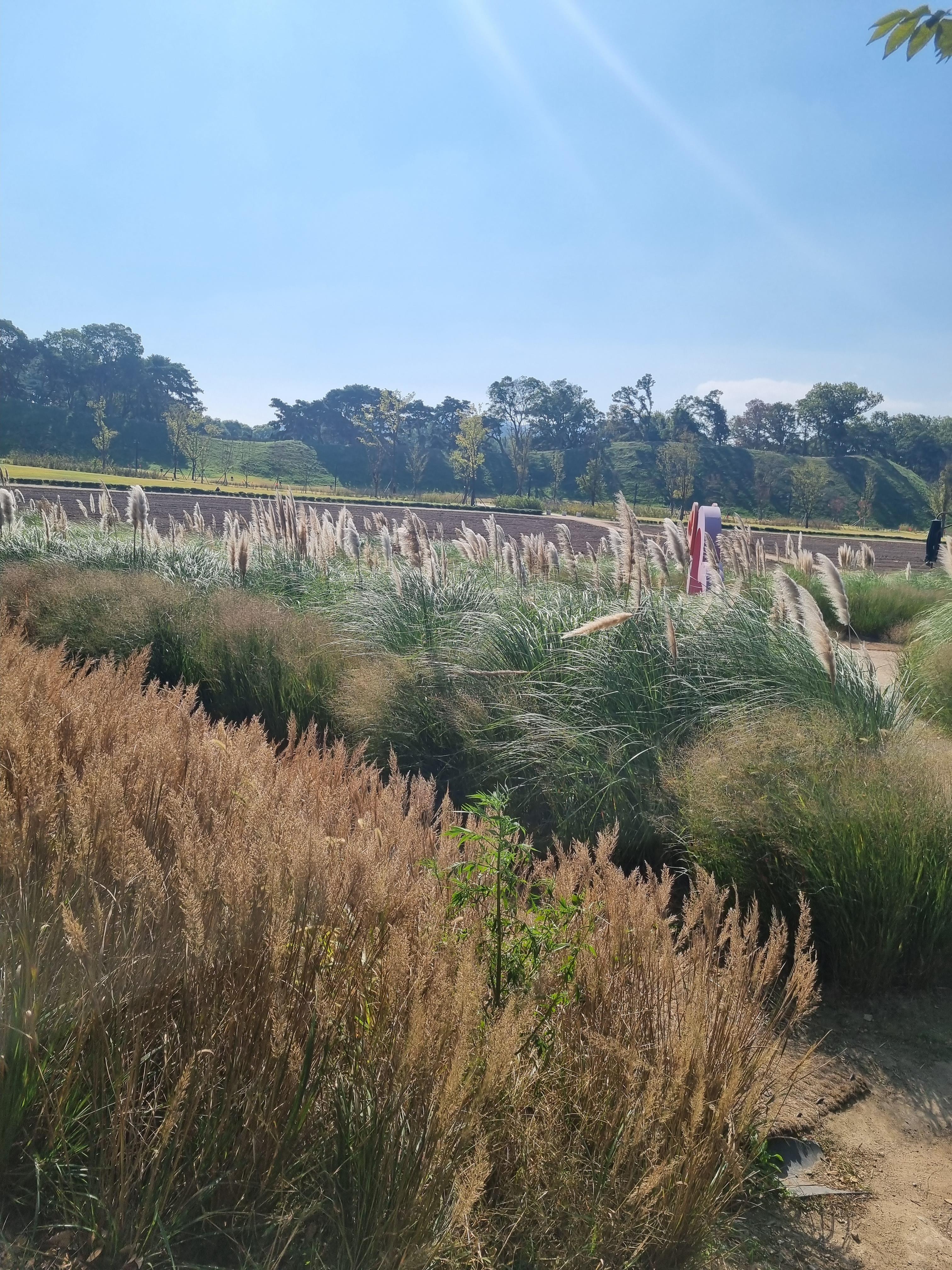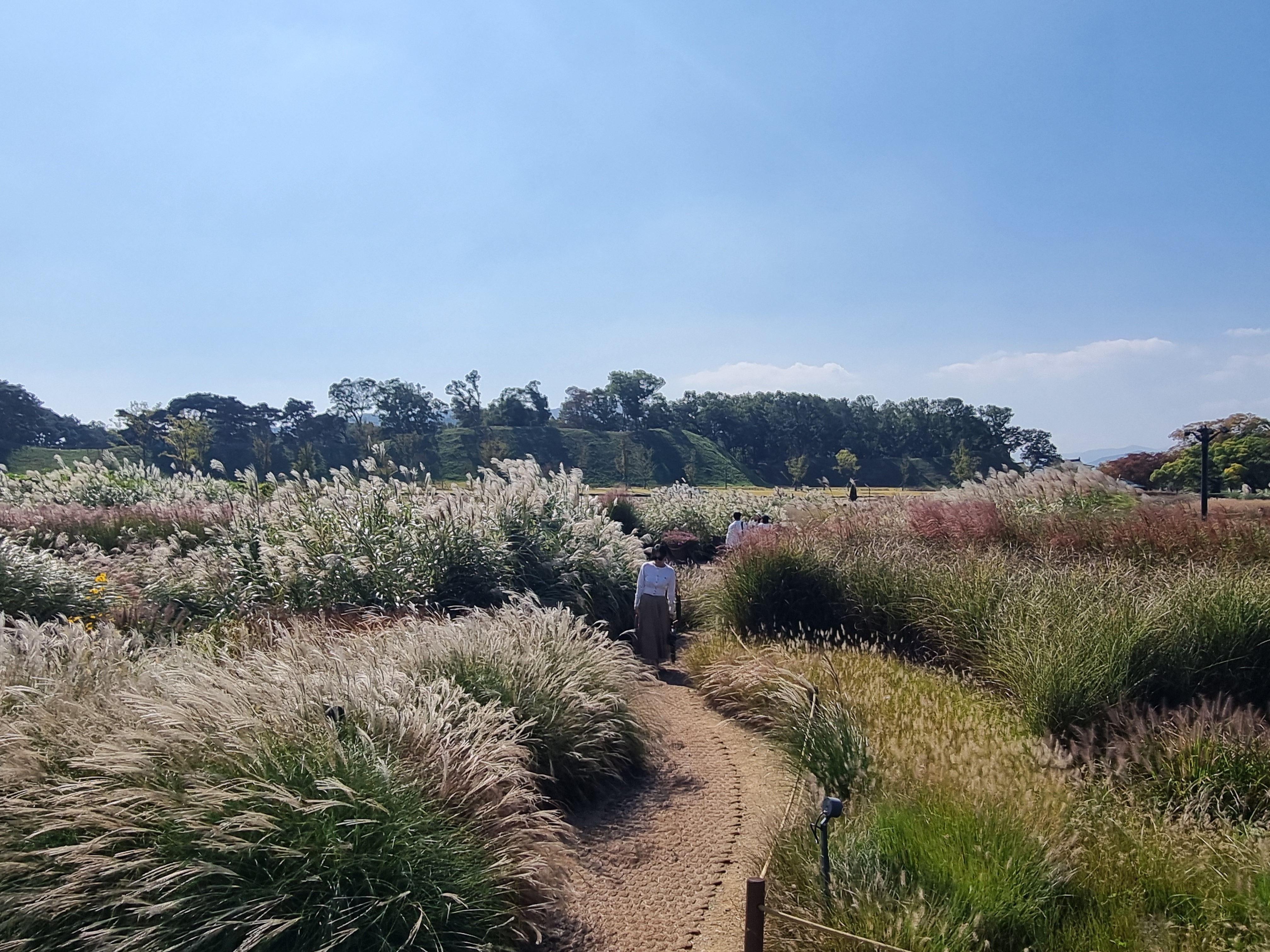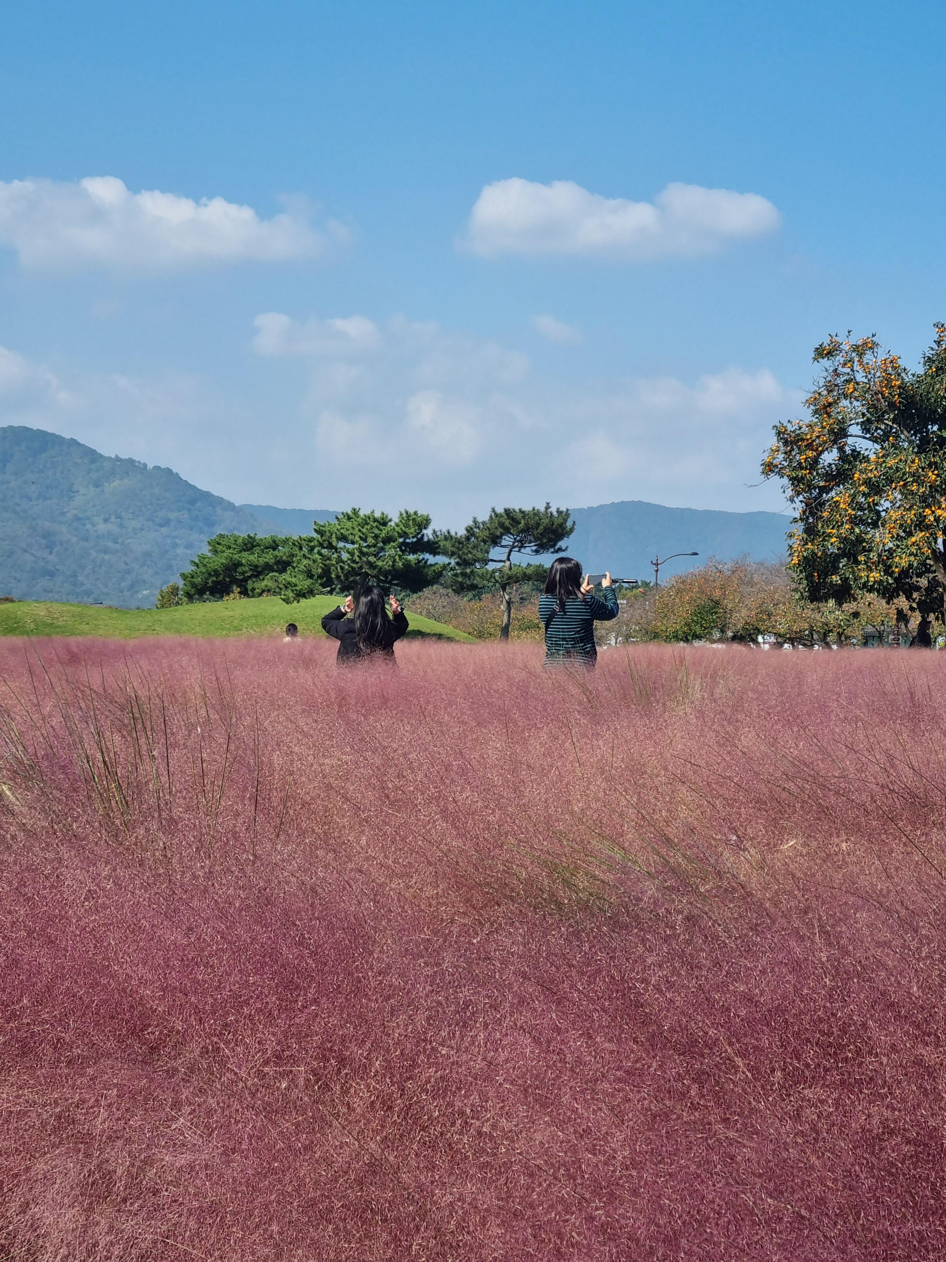 멀리 떨어져서 보니, 모두 핑크뮬리에 파묻힌 느낌이에요. 저분들은 그냥 길에 서 계신데..