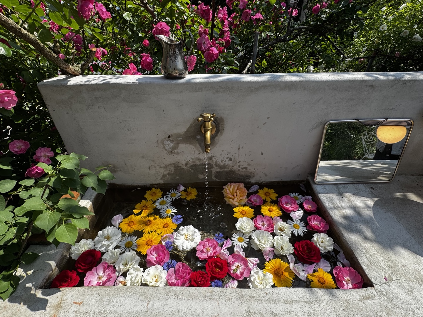 이 감성 어쩔꺼야~~~ 꽃으로 가득찬... 저... 시멘트 세면대?? ㅎㅎ 정원의 가득 꽃들을 따다 저리 이쁘게 꾸며두셨더라구요