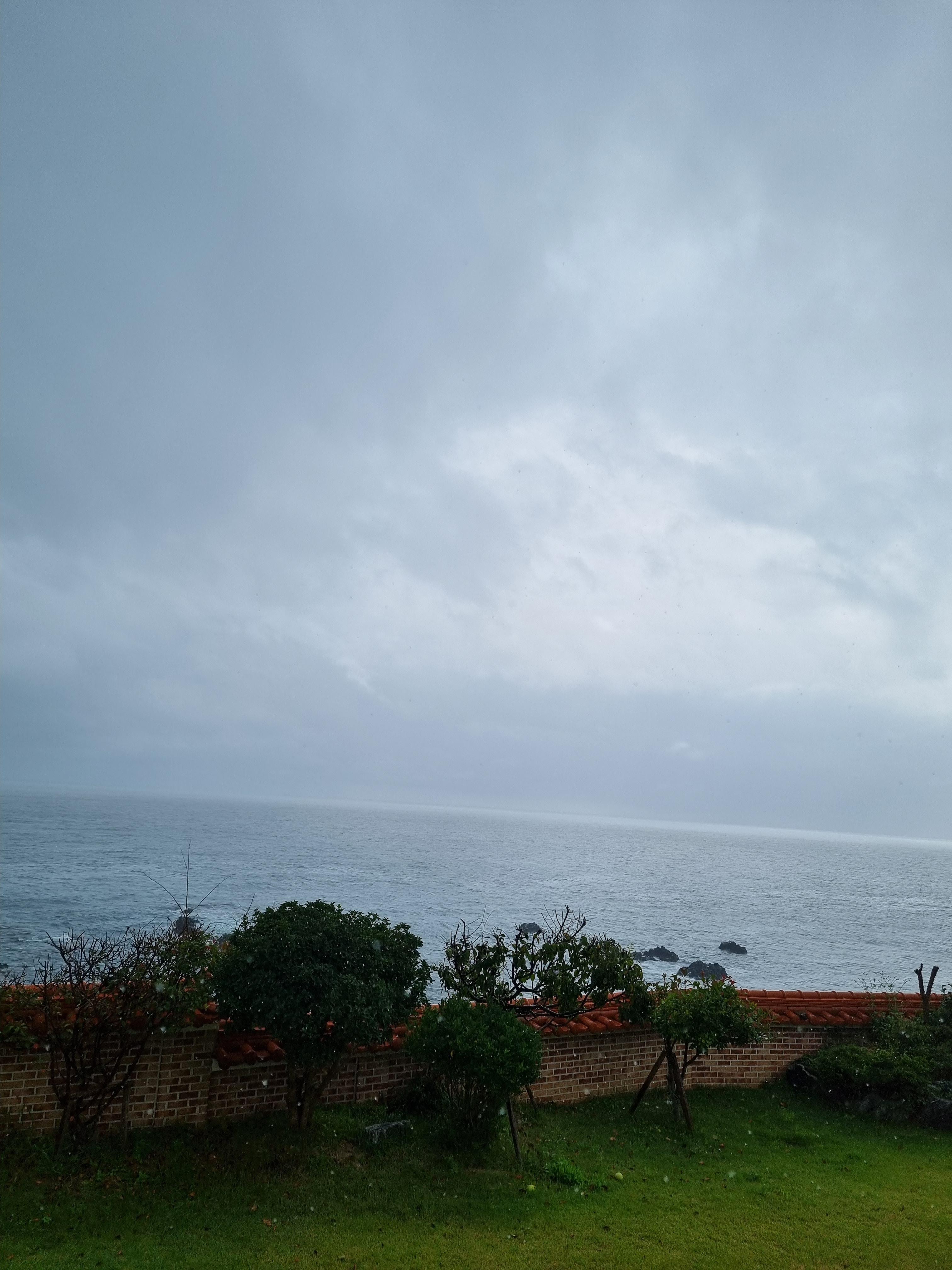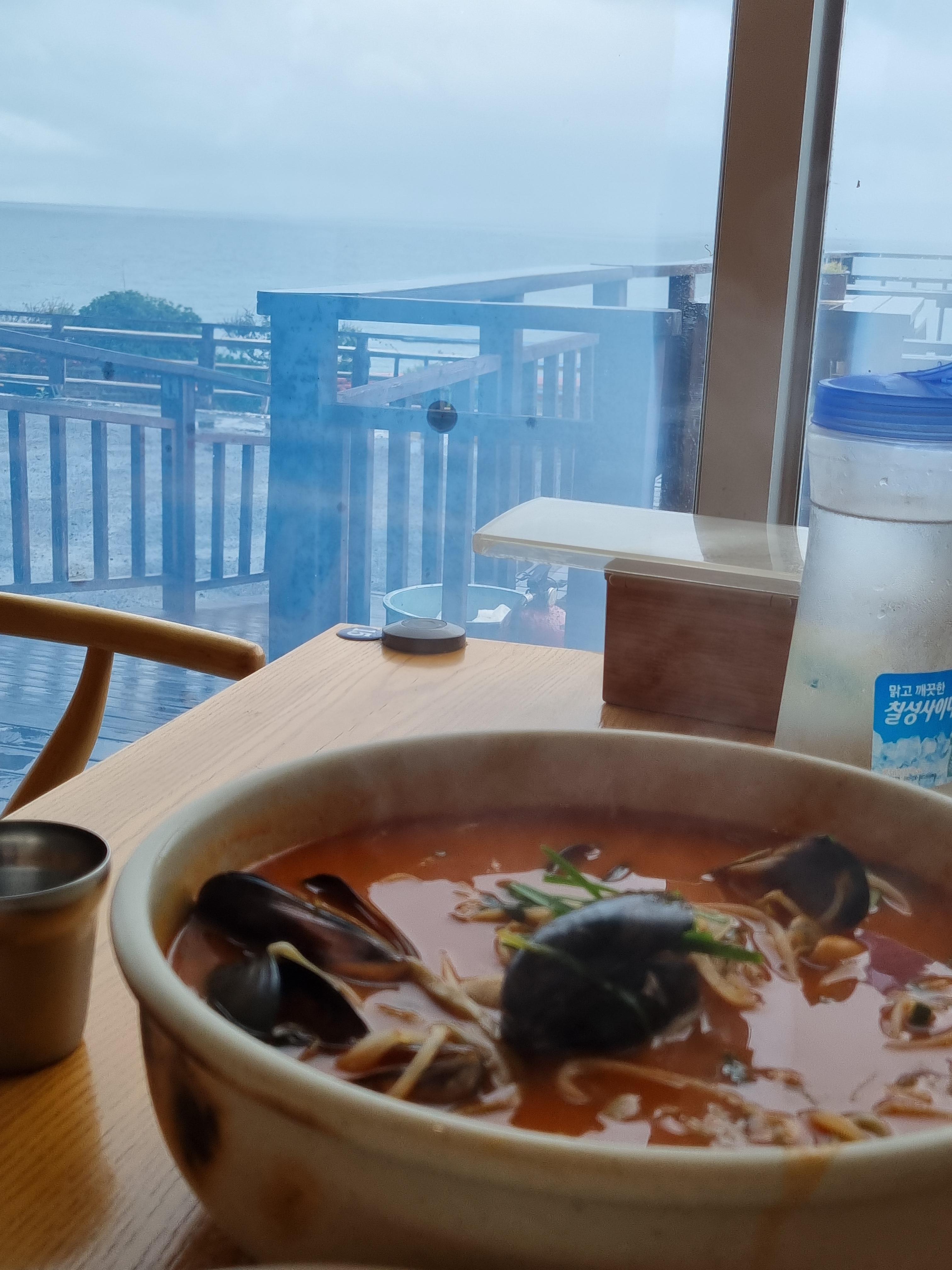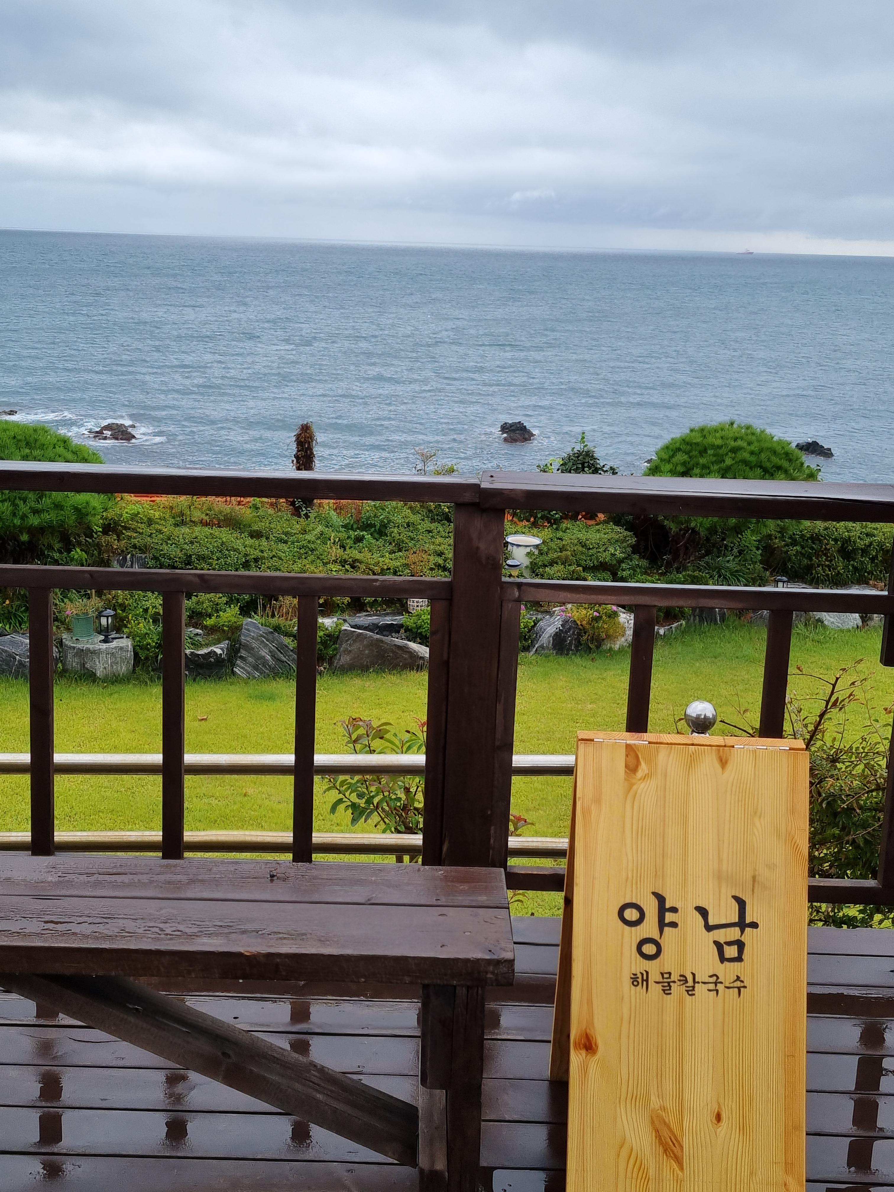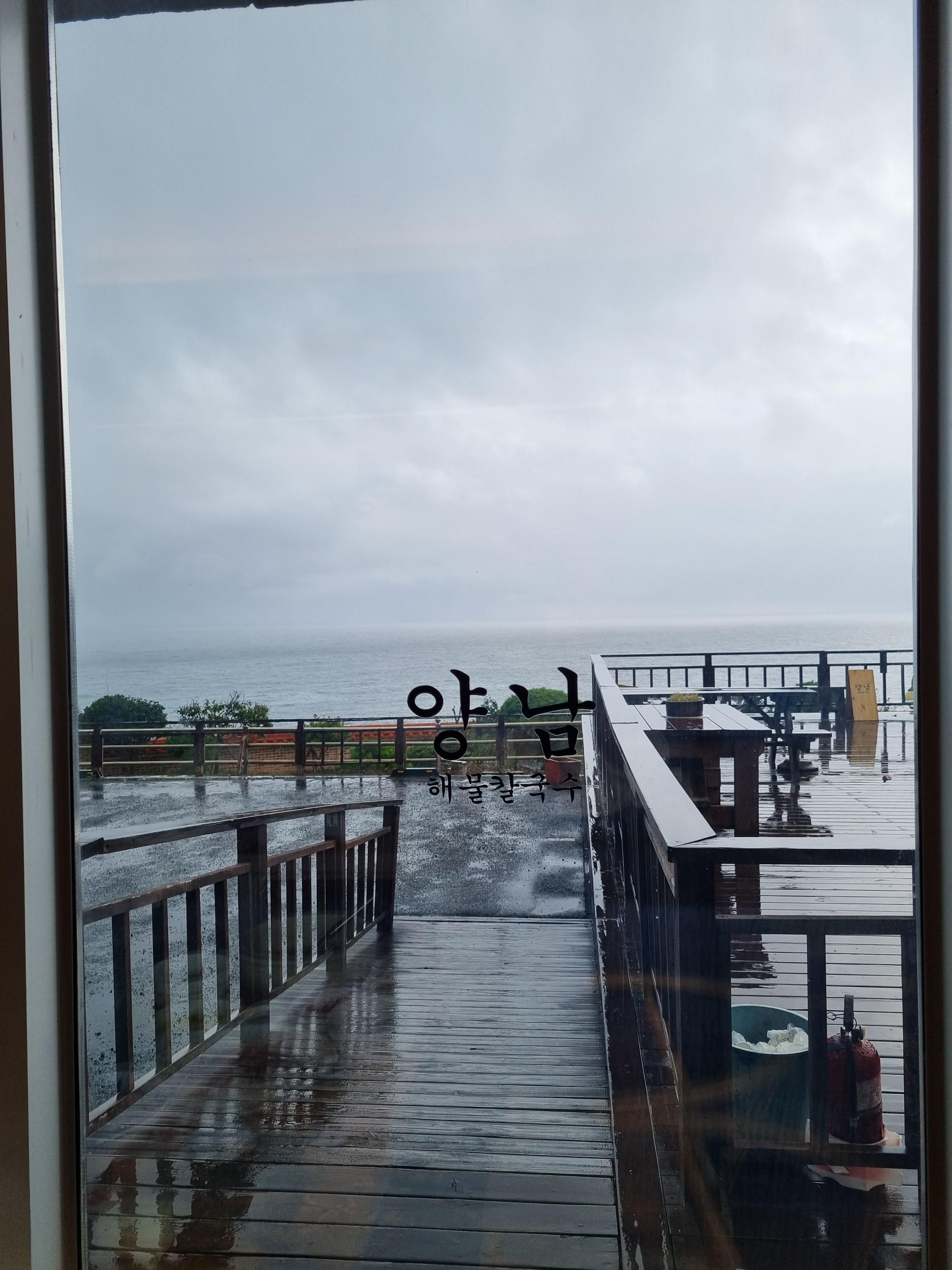 인스타에서 본 적이 있어요. 칼국수 집인데, 바다뷰인 집...막 비가 내리기 시작해서 하늘이 흐렸어요ㅜ