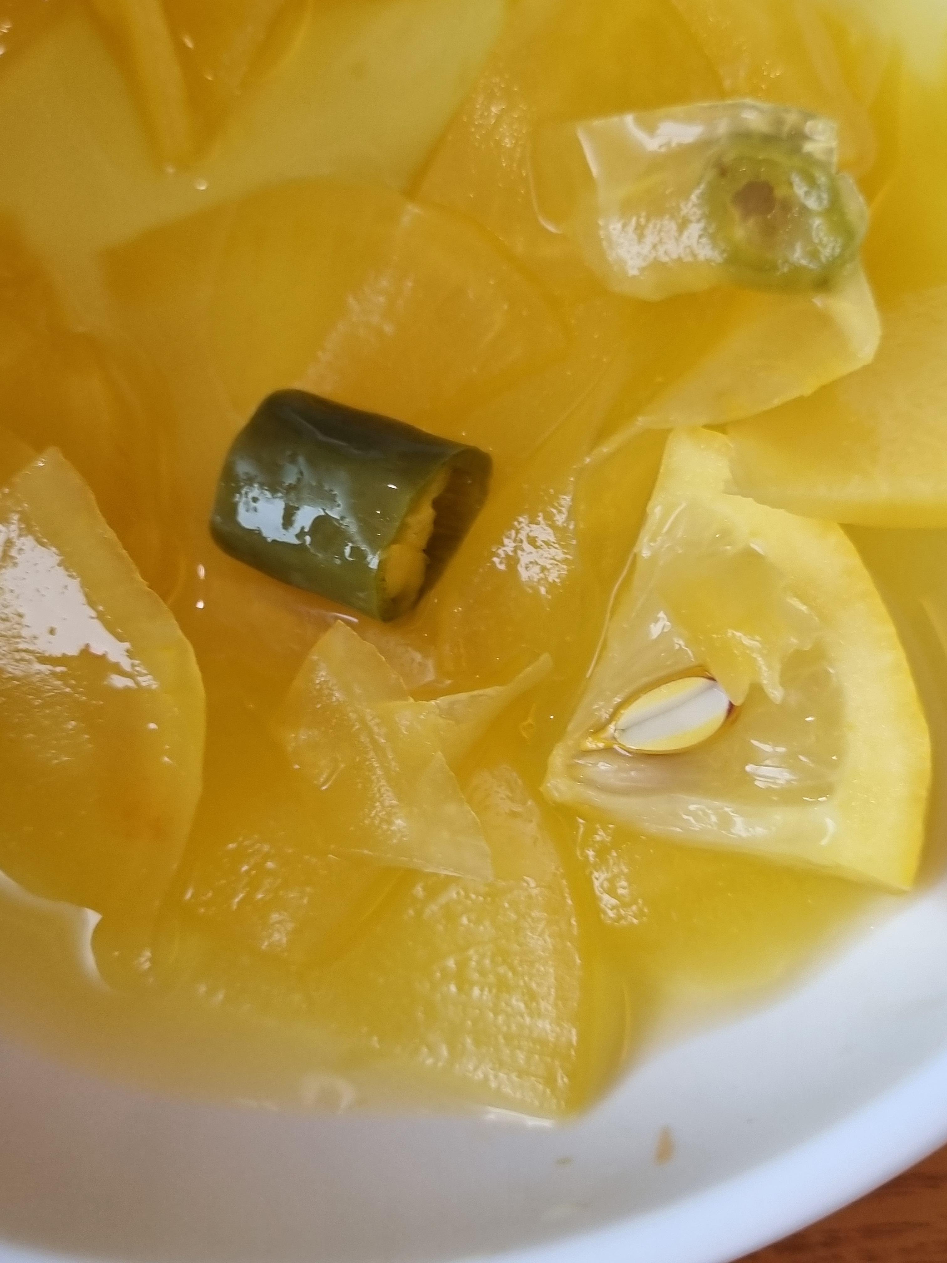 단무지에 레몬과 고추가 들어있네요. 근데 좀 짰어요~상큼할 줄 알았는데...