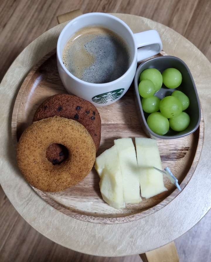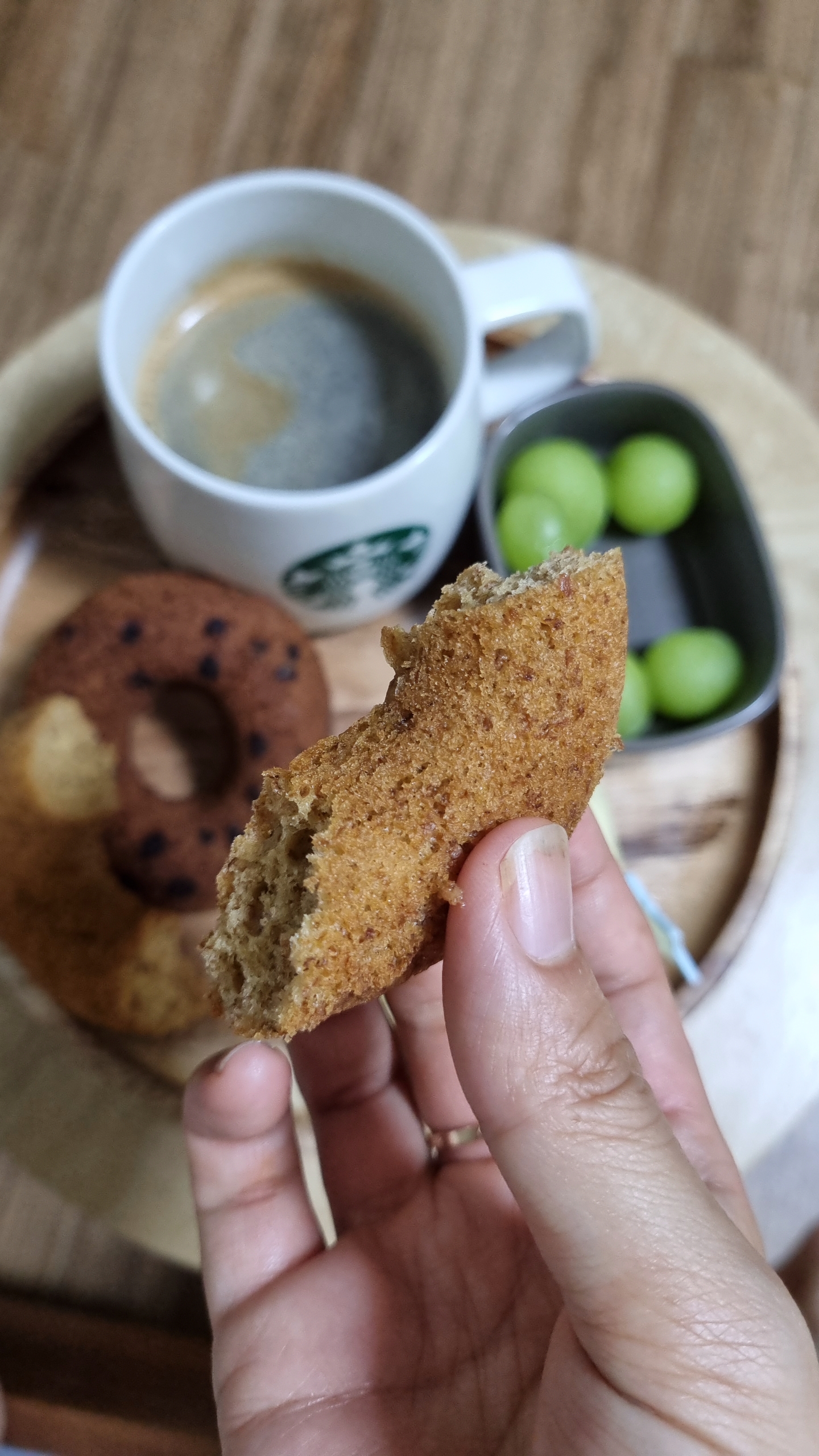 어제 미주라 토스트와 함께 구입 한 통밀 도넛으로 오늘 아침을 먹었네요~^^