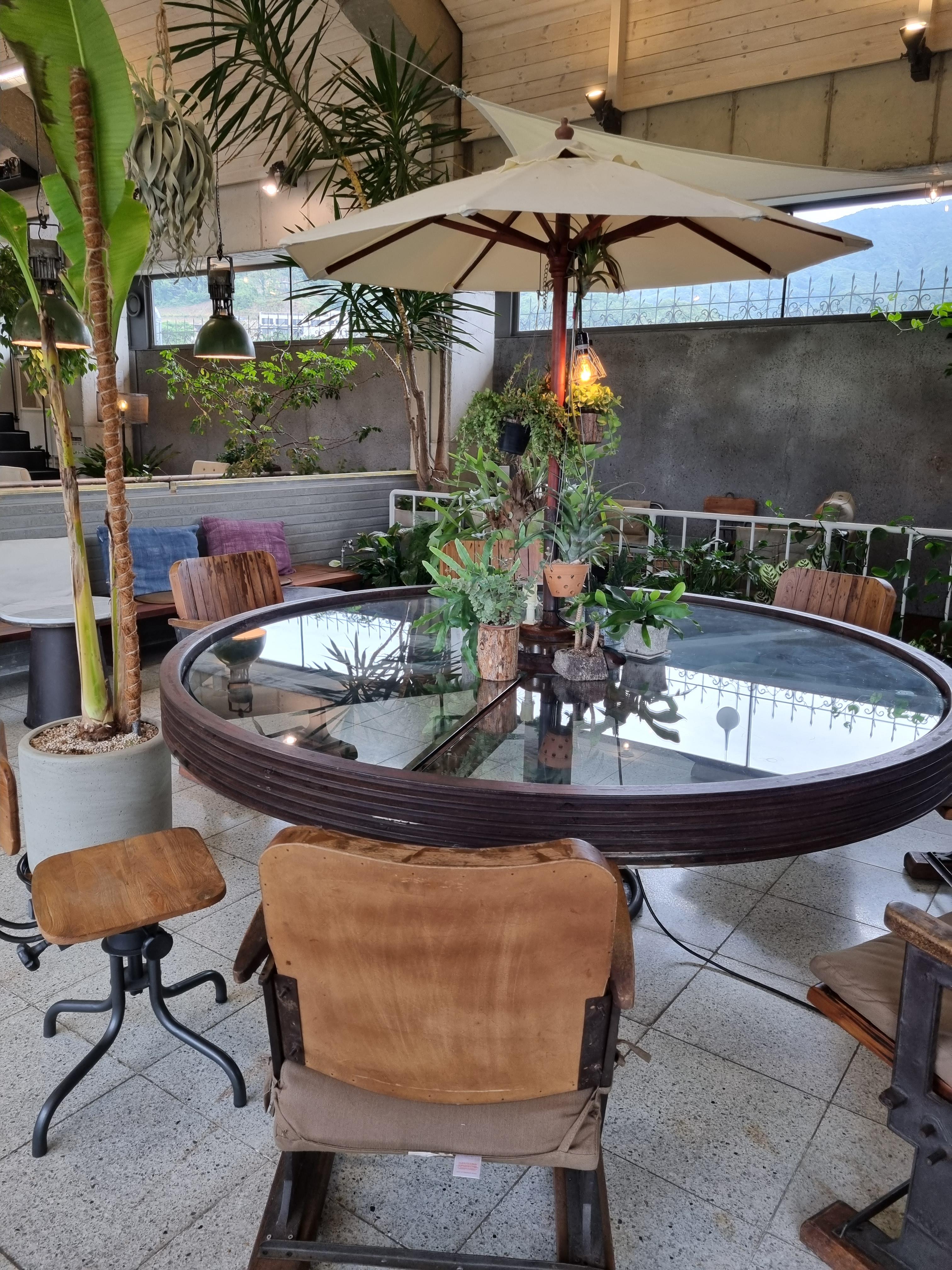 각각 다른 의자들.. 과 자연스러움과 세월이 느껴지는 테이블.. 인테리어 감각이 범상치 않아요~~