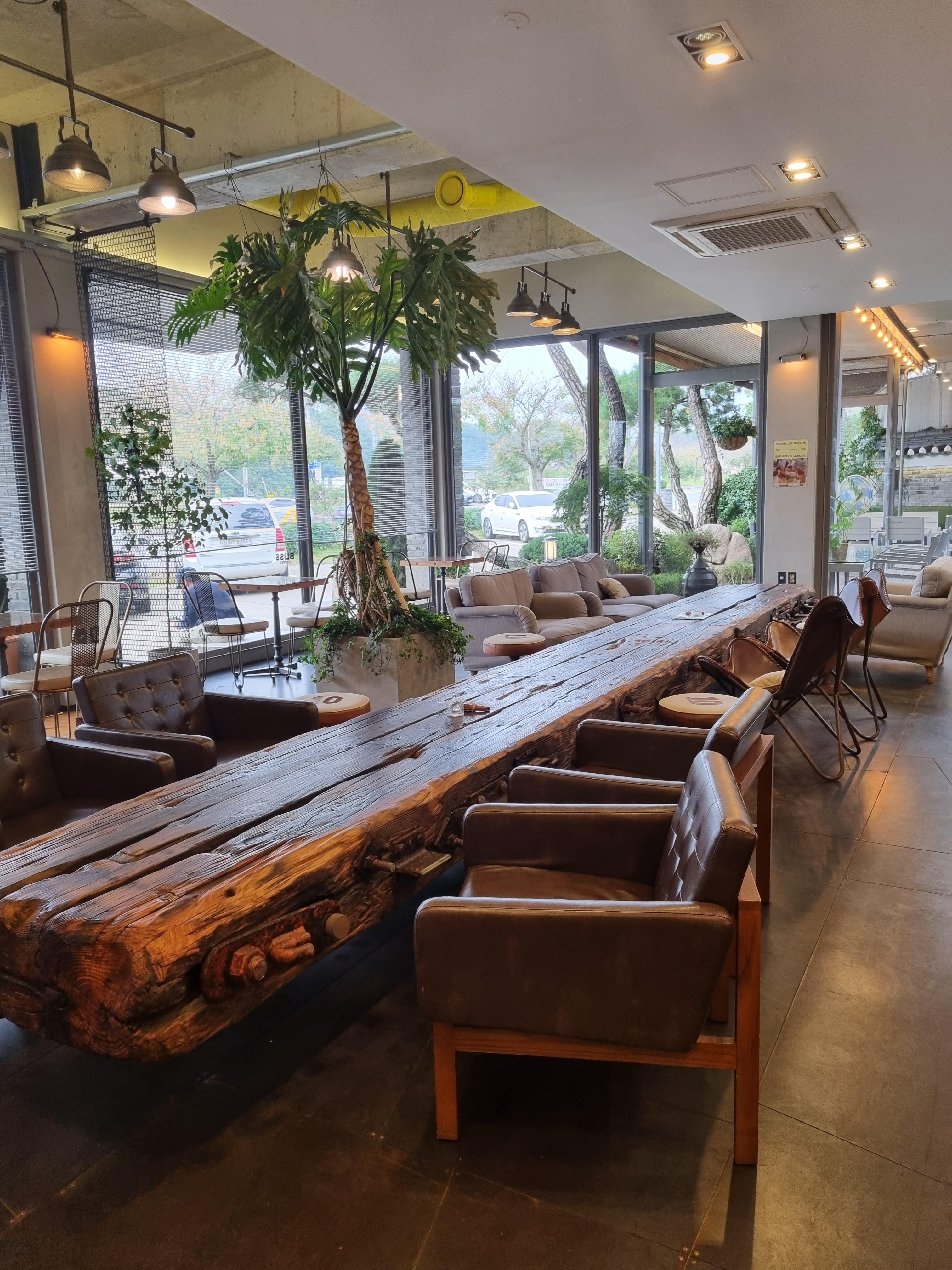 불국사에서 보문단지 가는 도로변에는 카페, 식당, 펜센 등 많이 보여요~ 그 가운데 기와지붕으로 지어진 2층 건물인 이 카페는 왜관은 평범한데, 내부가 반전인 곳이에요. 저번에 갔을 때도 외관보다 내부가 너무 멋지다고 감탄했는데. 오랜만에 간 카페가... 여러 가지 업그레이드가 되어있네요^^