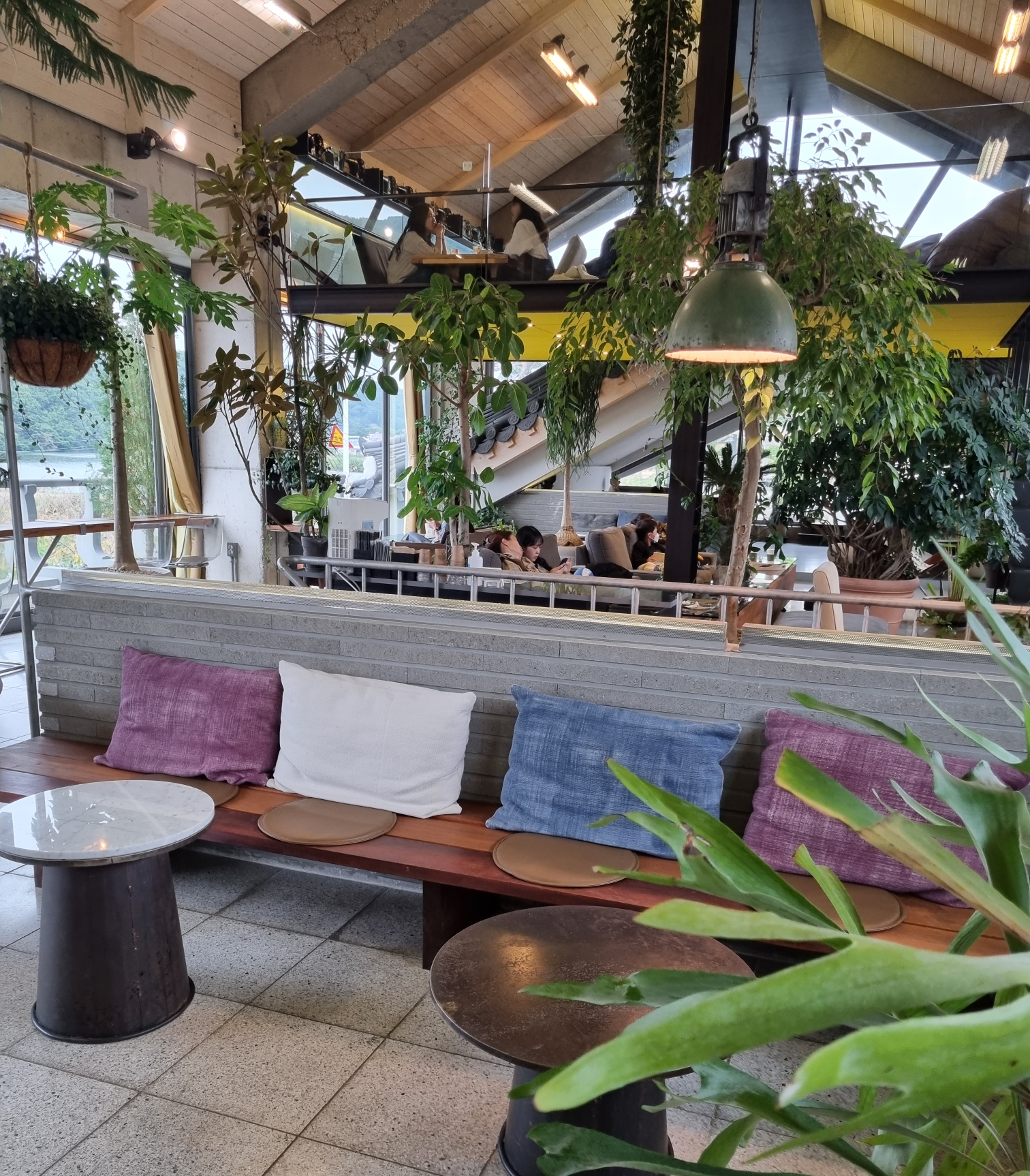 멀리서 보면 경주에서 보는 평범한 건물 같지만 가까이 가 보면 평범하지 않아요~ 일단 1층은 애견 동반 존과 일반존이 함께 있는데요, 이 부터가 특색 있어요^^