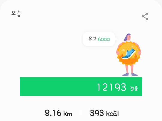 그래서, 오늘 총 12193을 걸었어요. 다리가 아릿합니다.