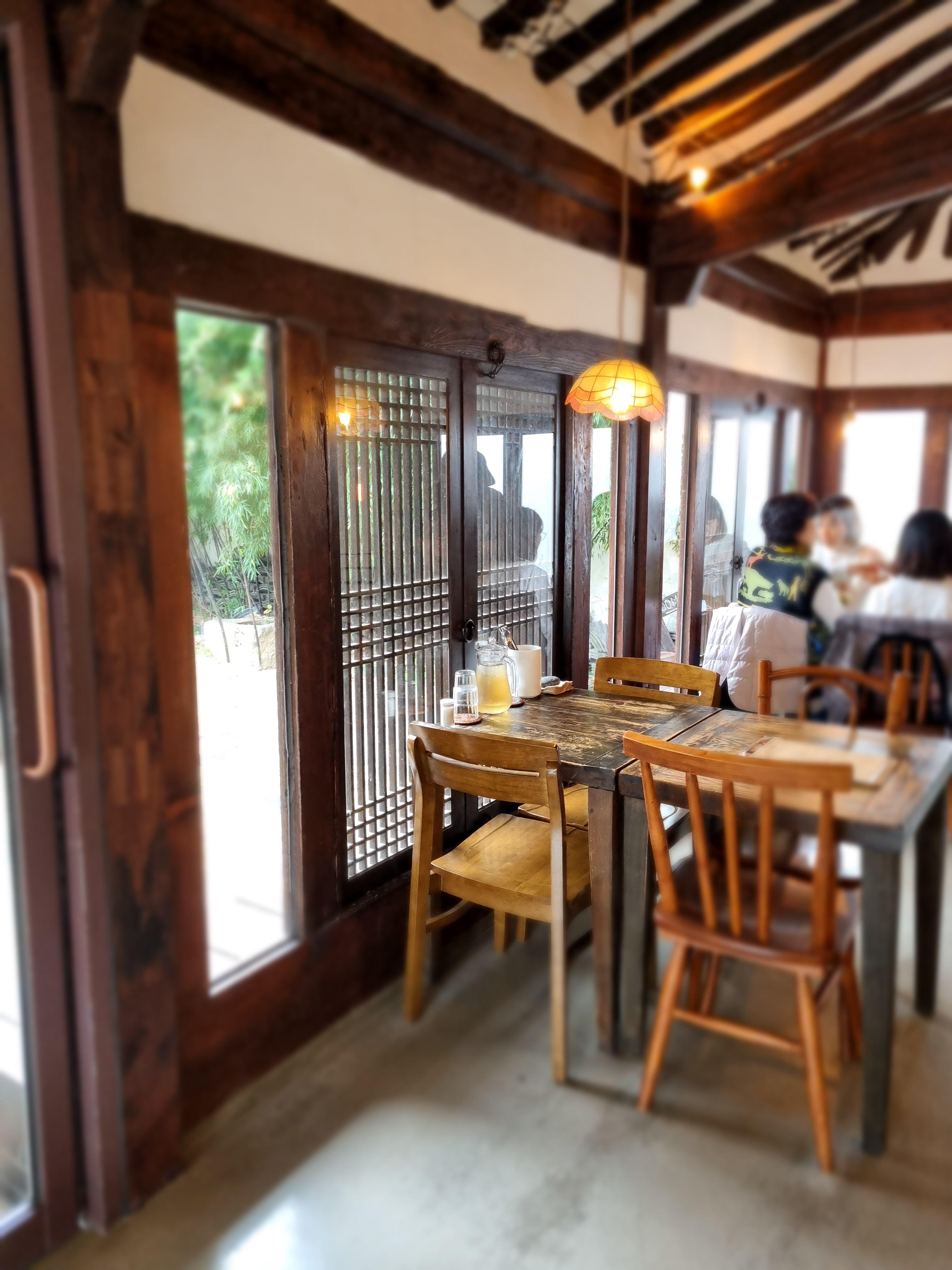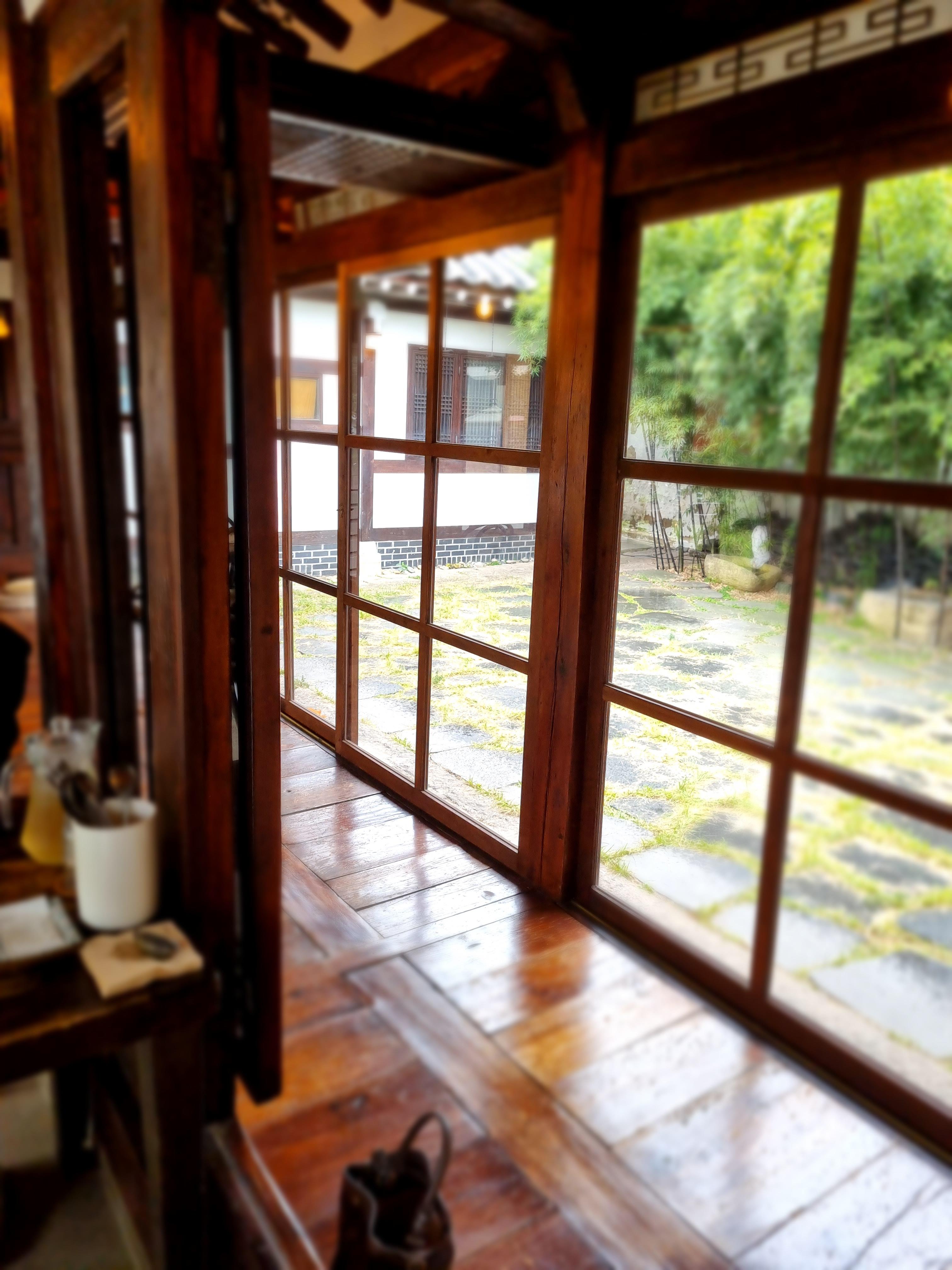 집 안에 ㅁ자 마당이 있는 거예요~~ 저 안에서 냥이들이 밥을 먹는데 너무 귀여웠어요. 식당 홀이 방이었고 집 안쪽으로 툇마루 같은 공간을 지나 안쪽 마당이 있는 게 구조가 너무 특이하고 신기하고 예뻤어요.